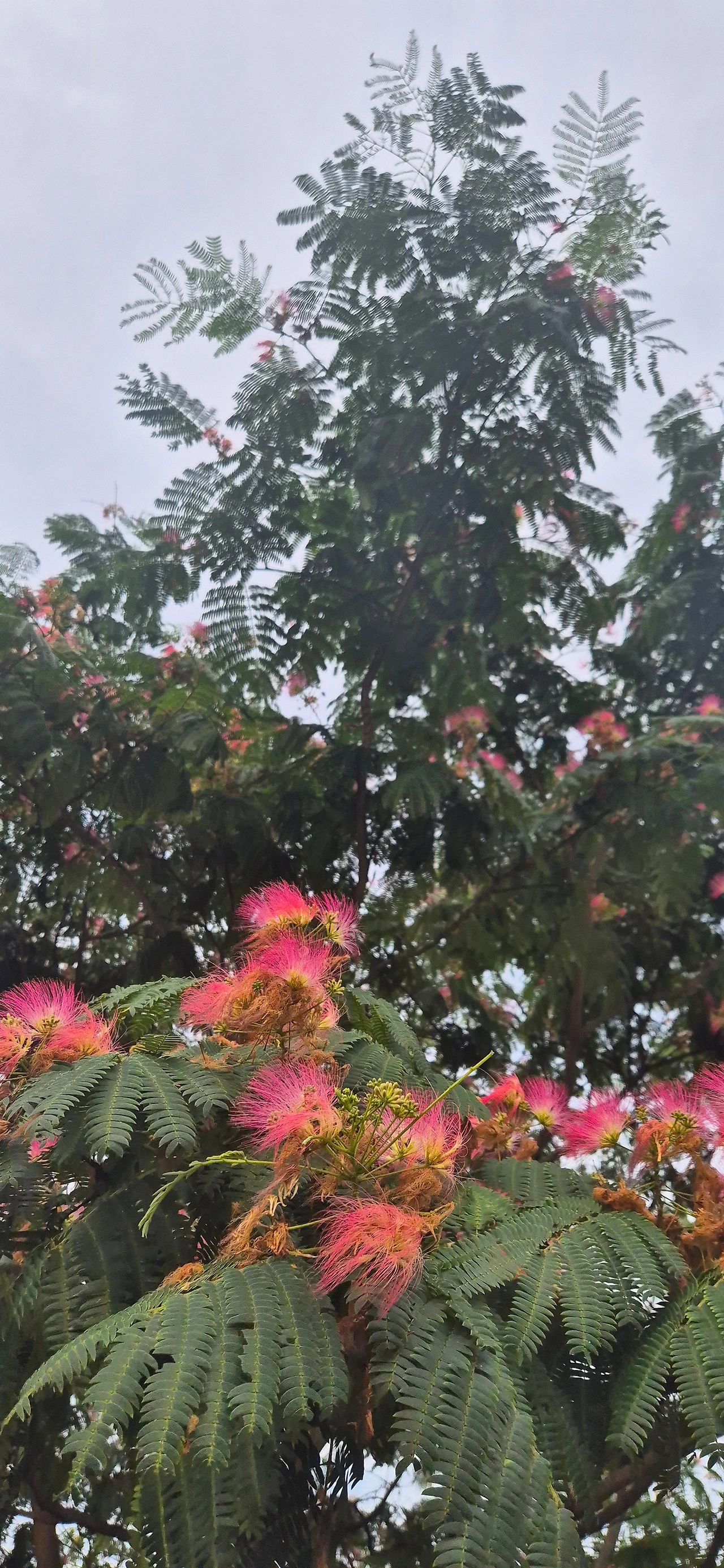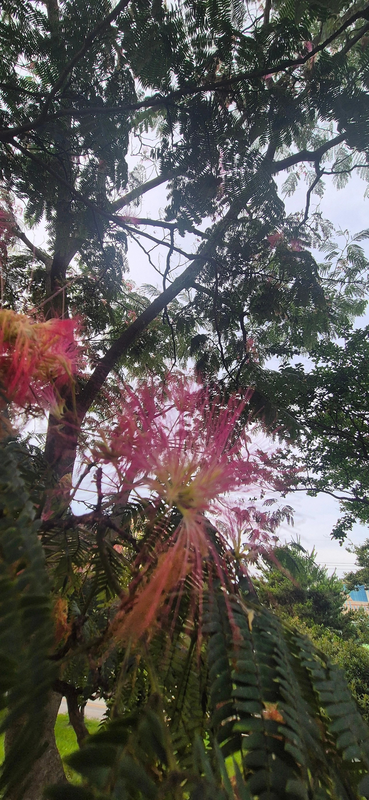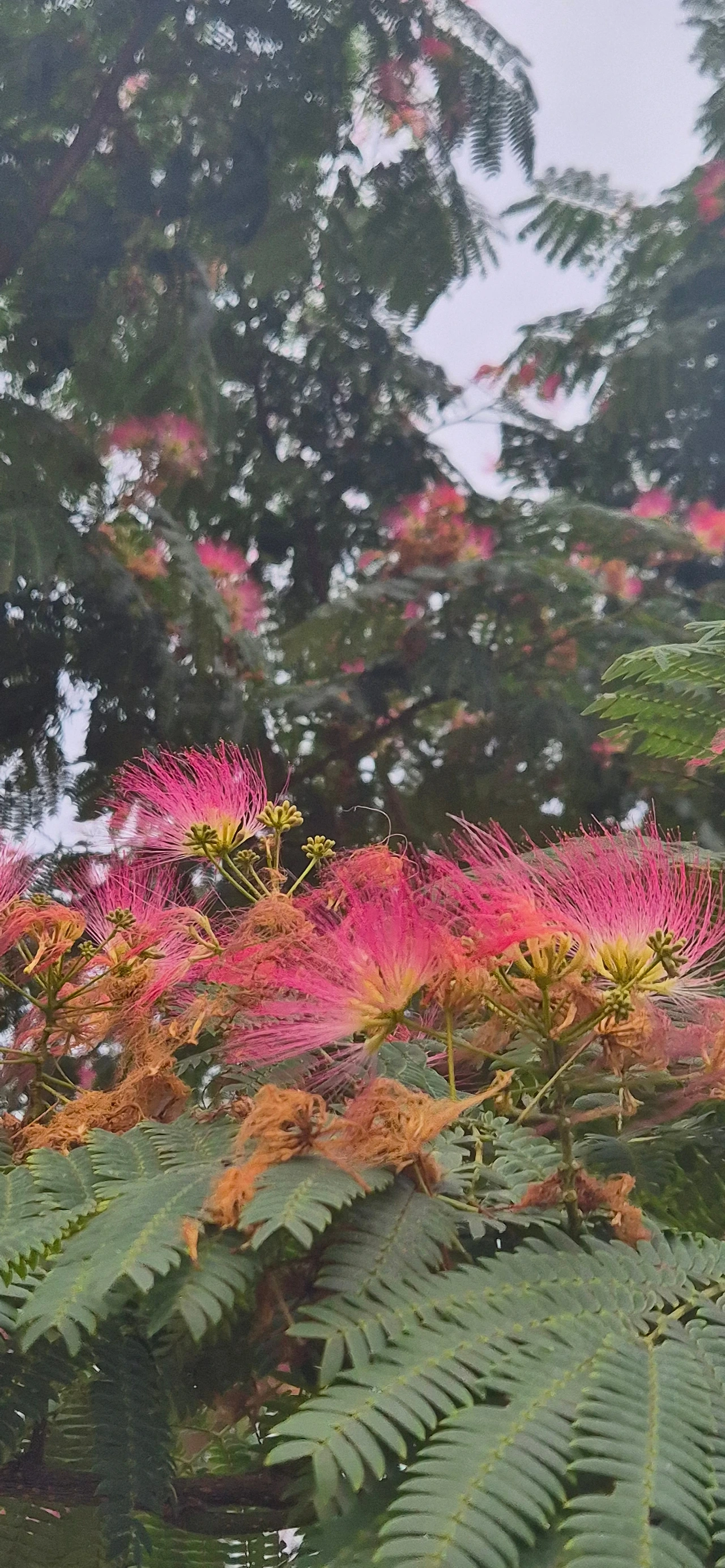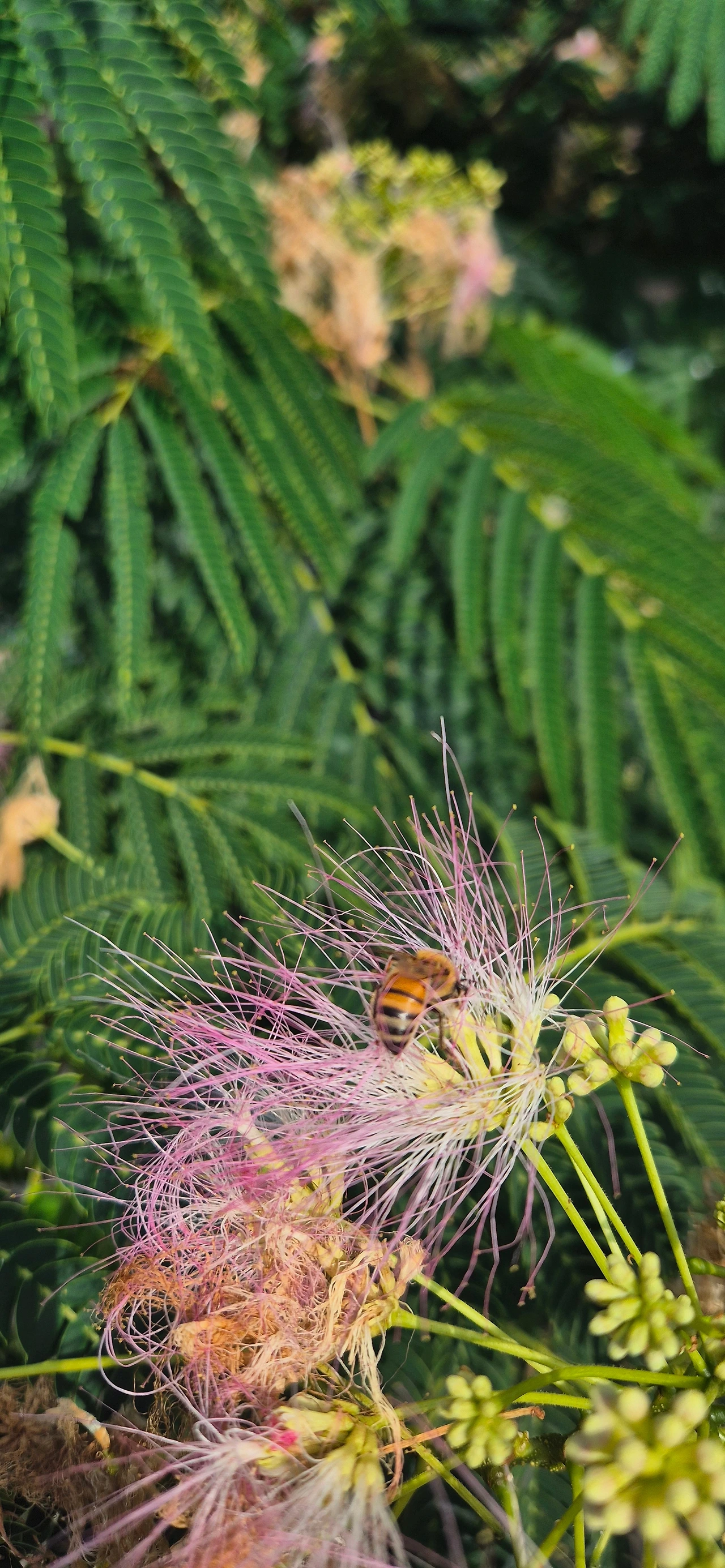 자귀꽃 머리를 분홍빛으로 물들였습니다