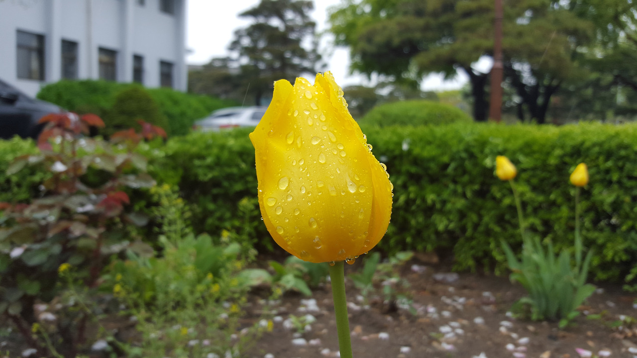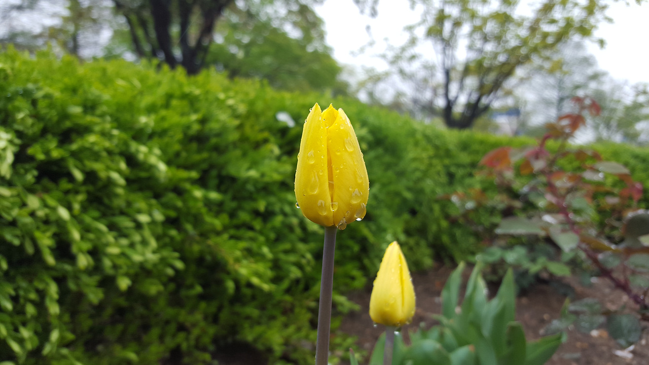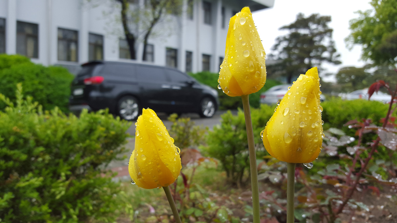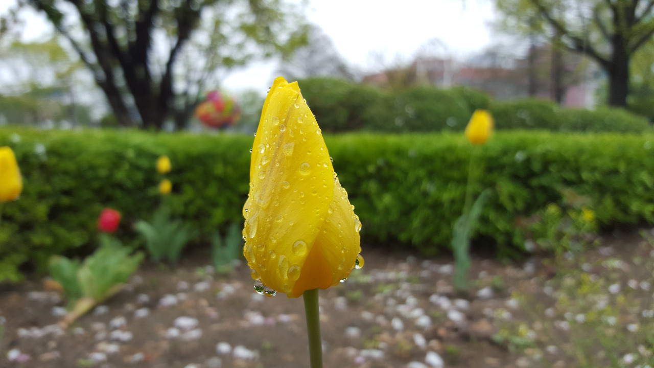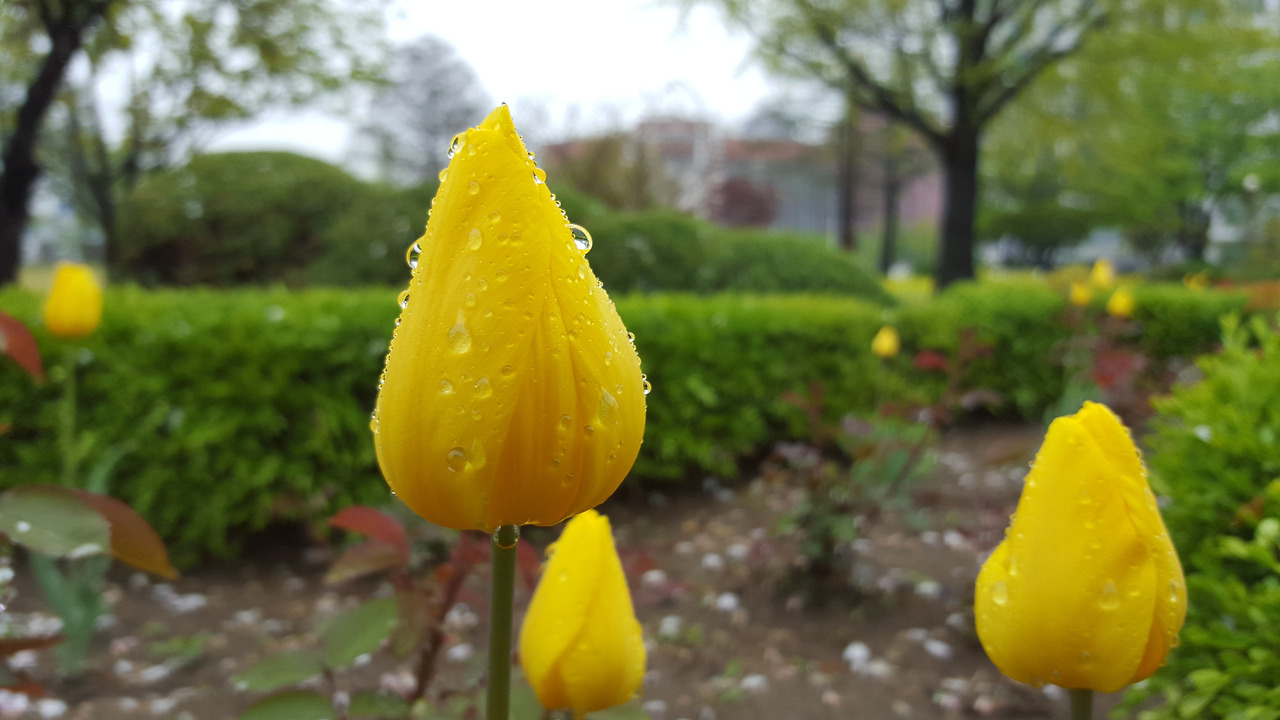 튤립이 비를 맞아