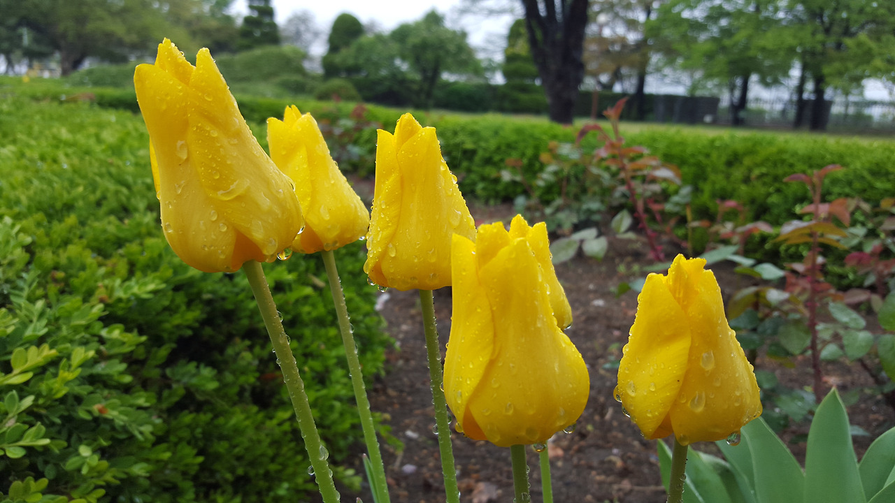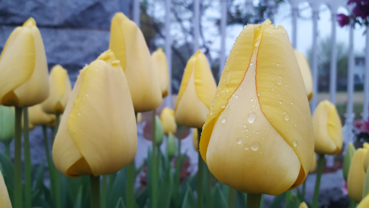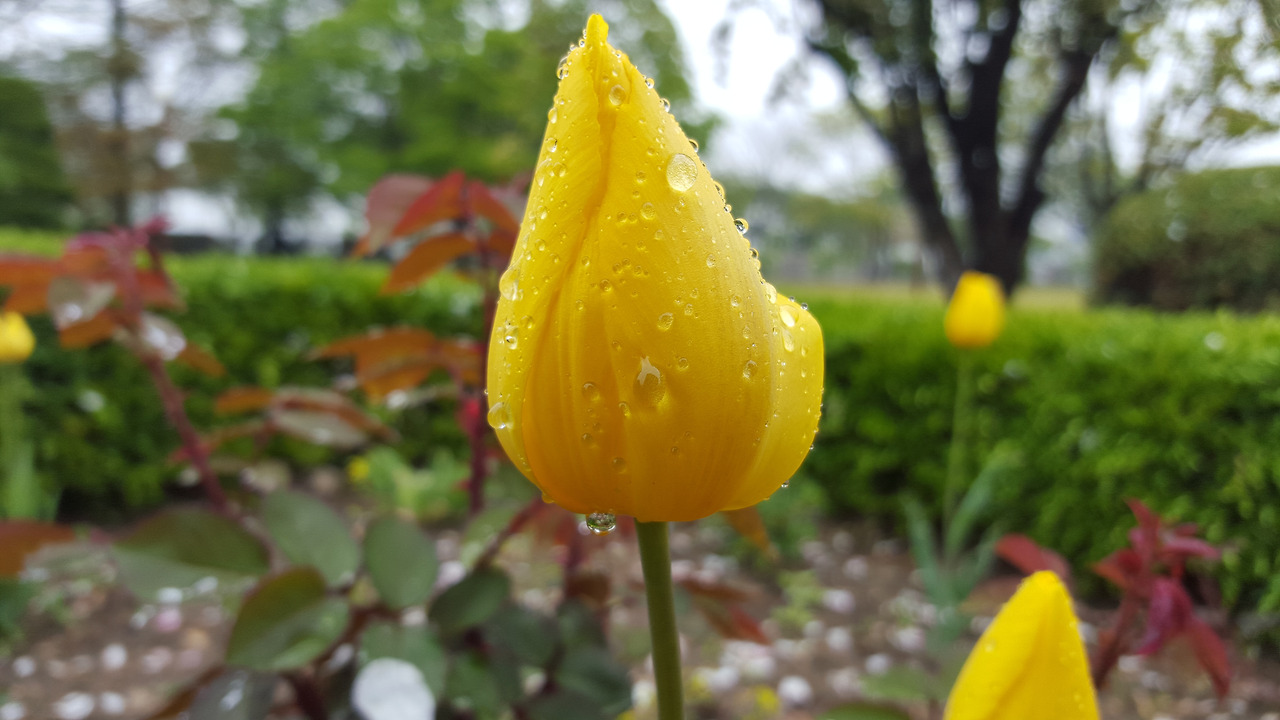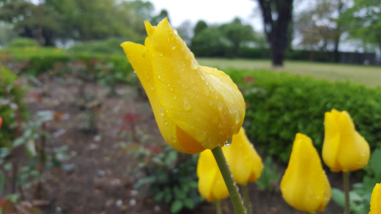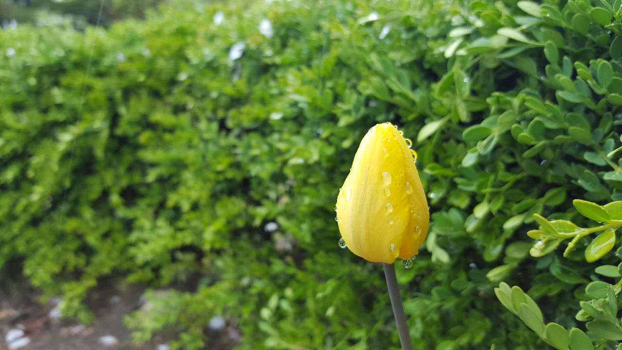 튤립이 비를 맞아