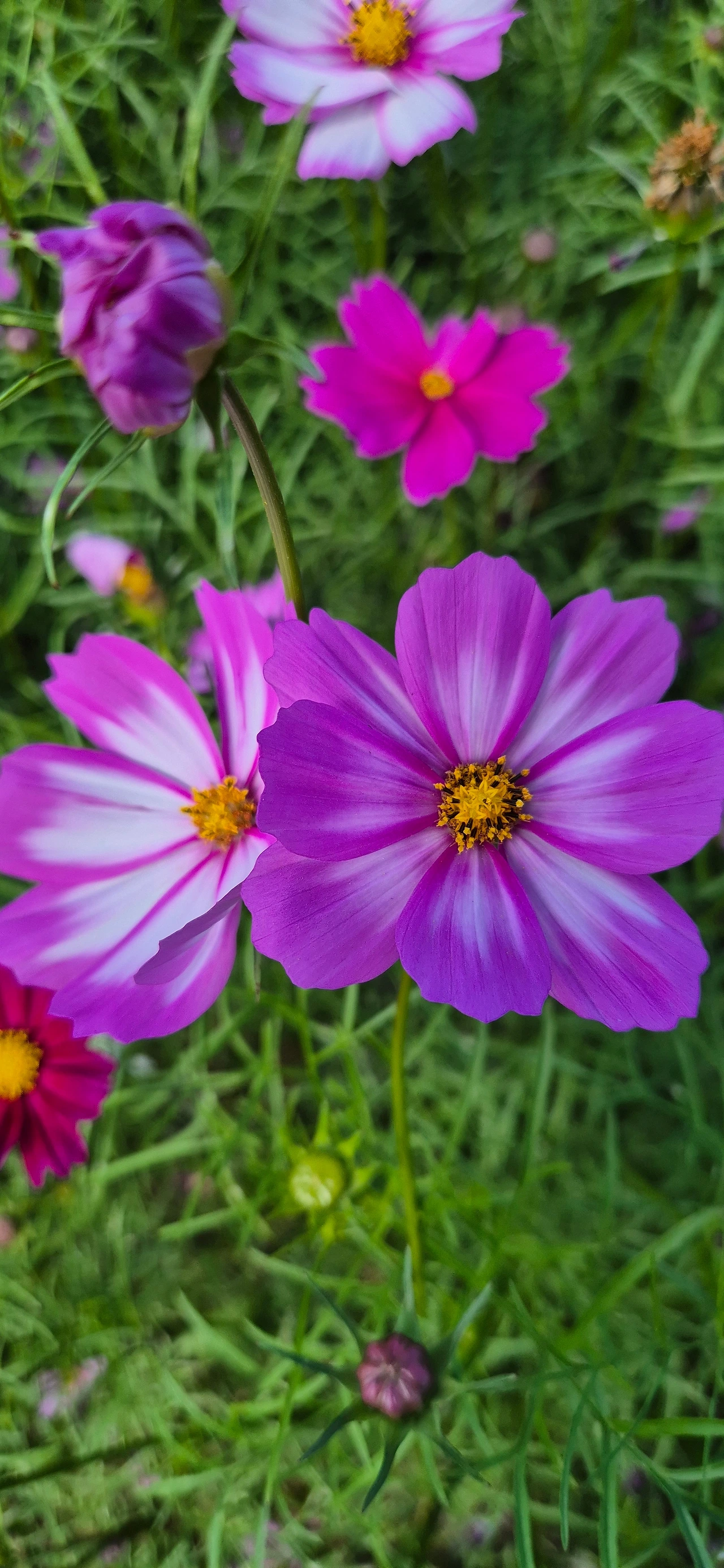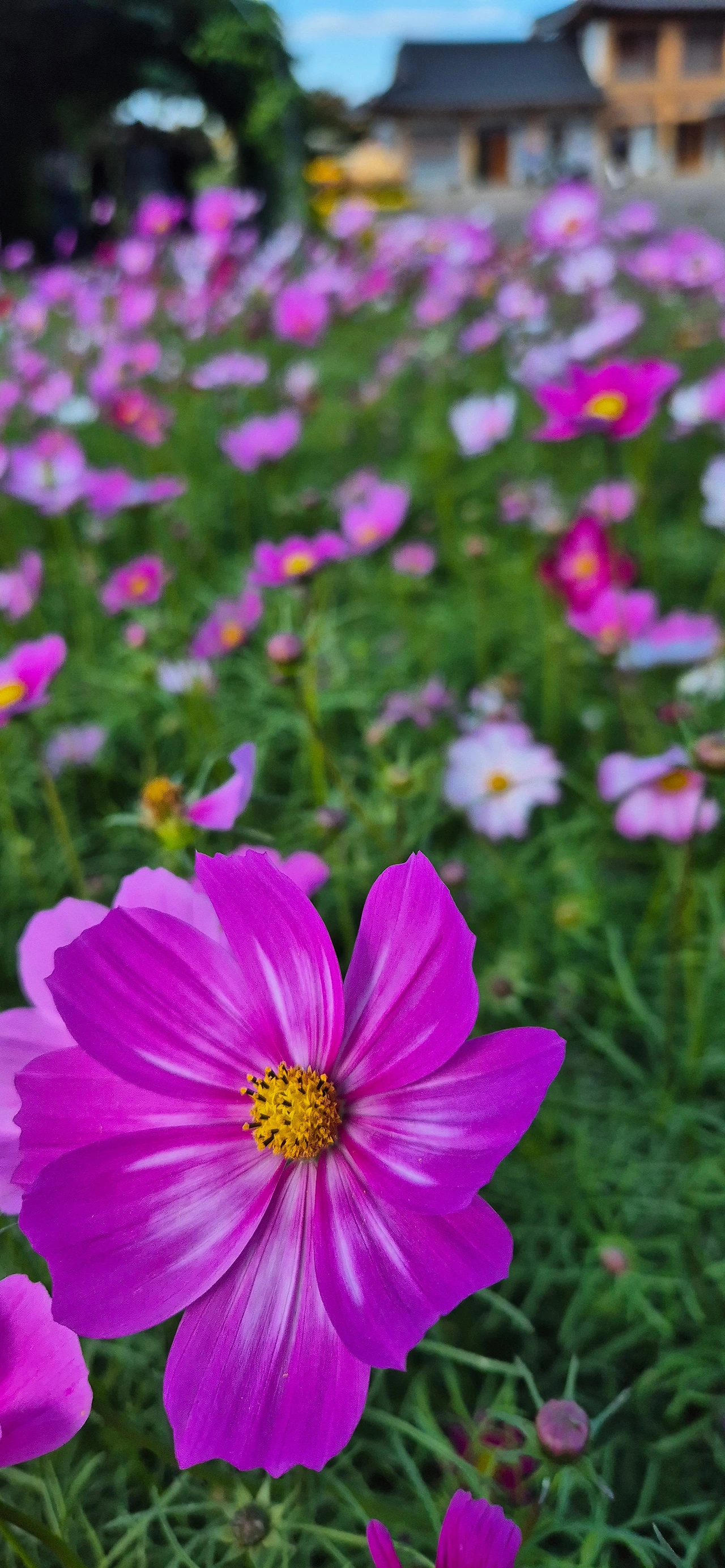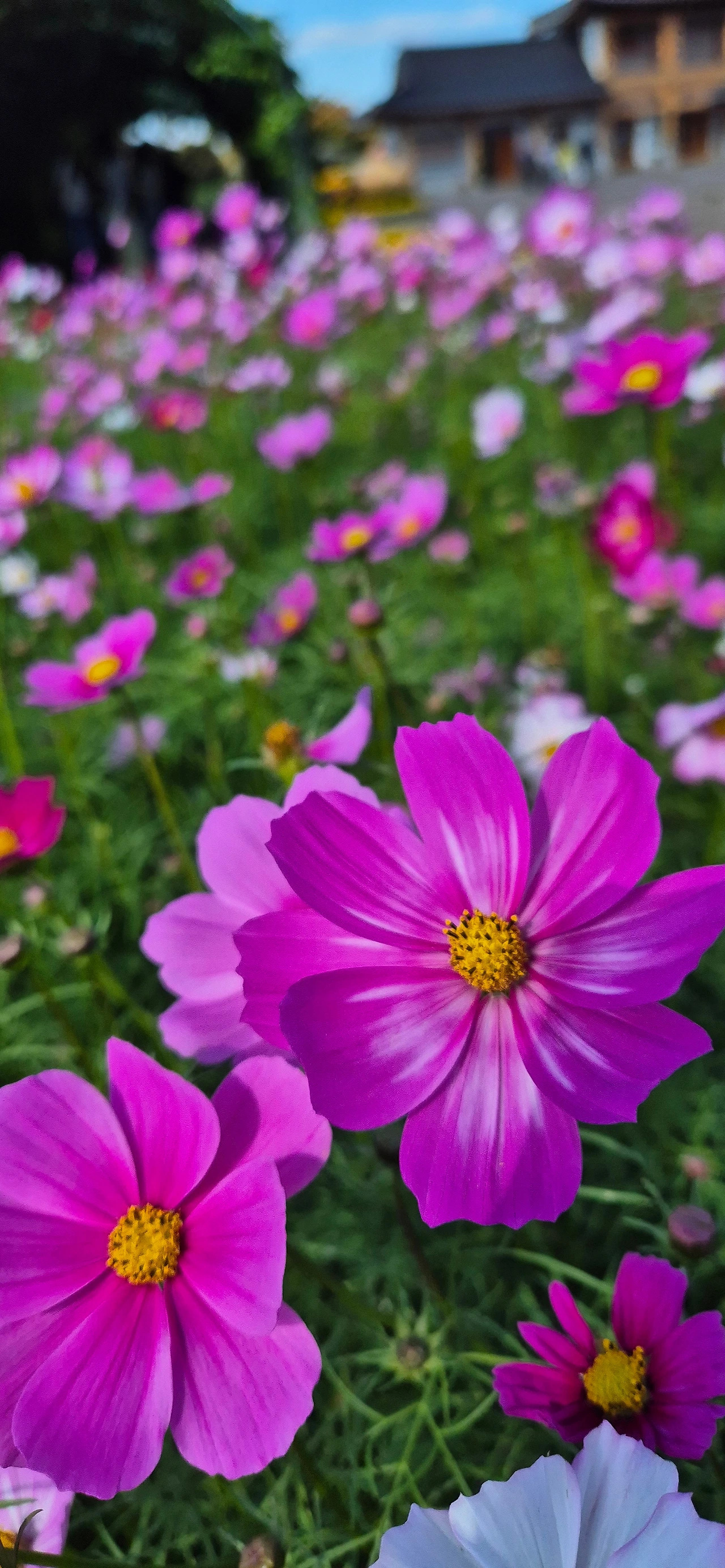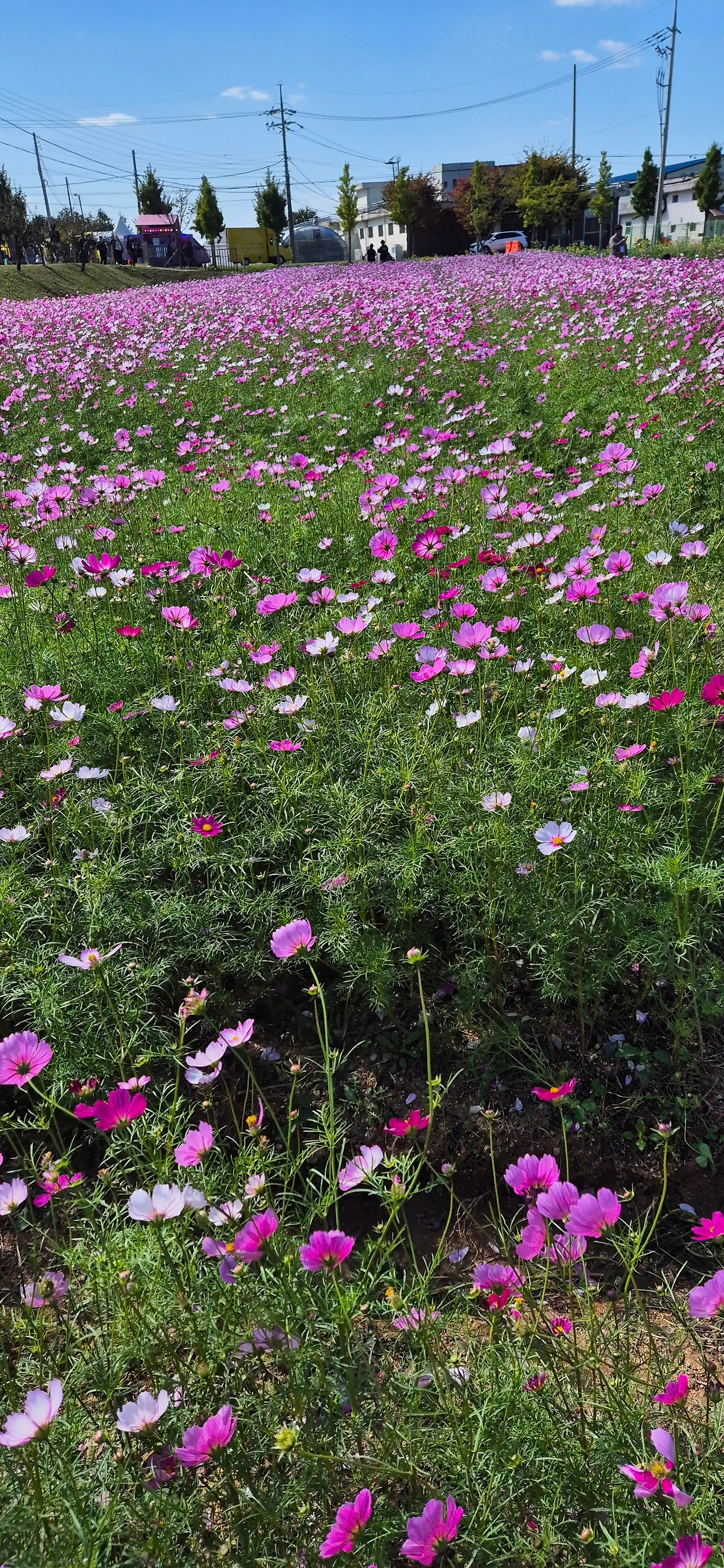 색색이 다른 코스모스 줄 세워