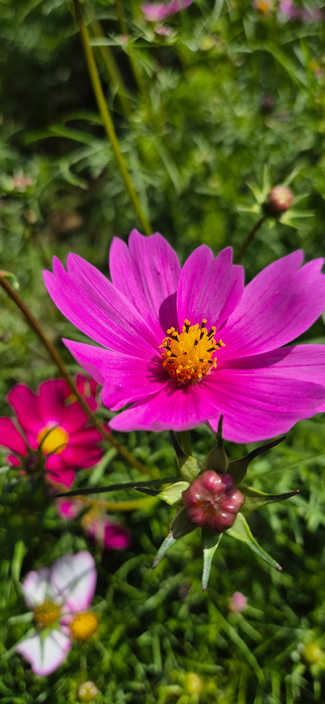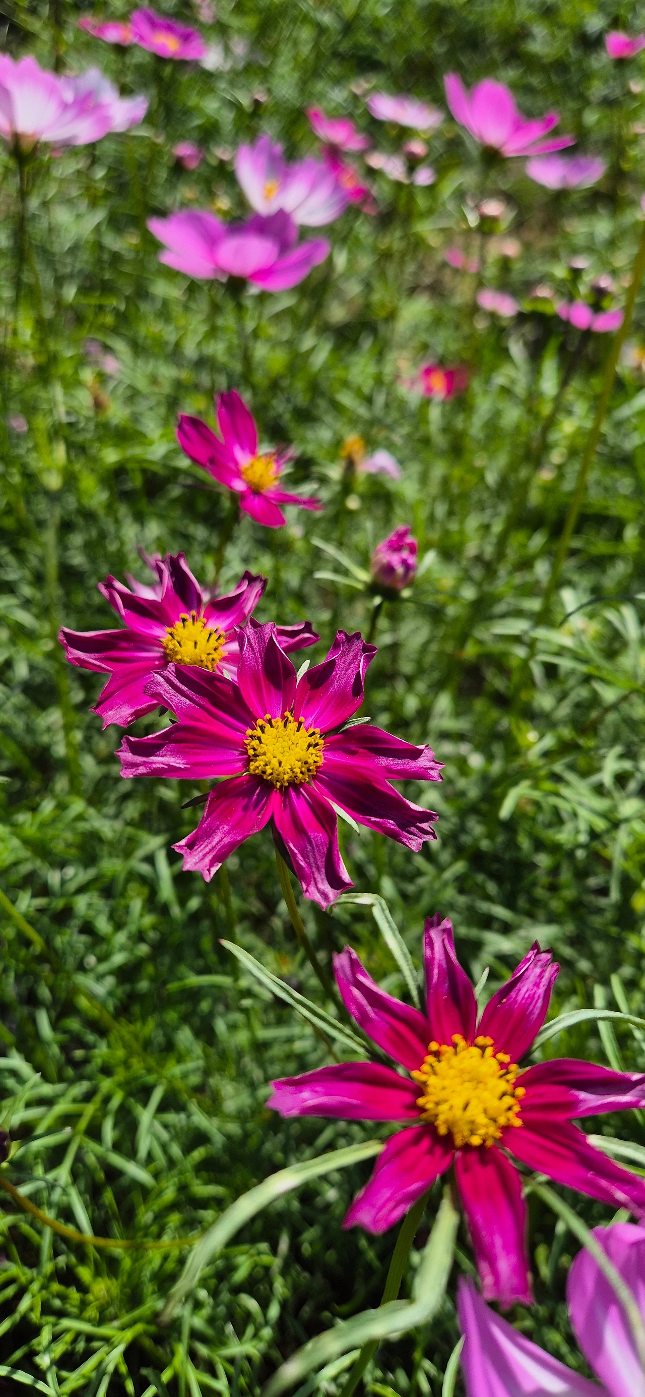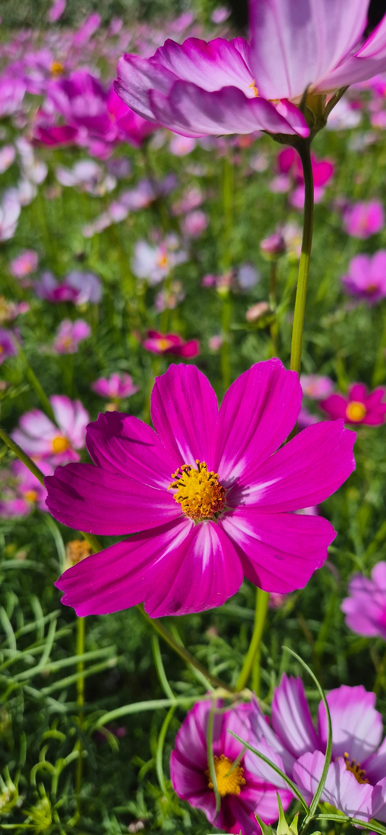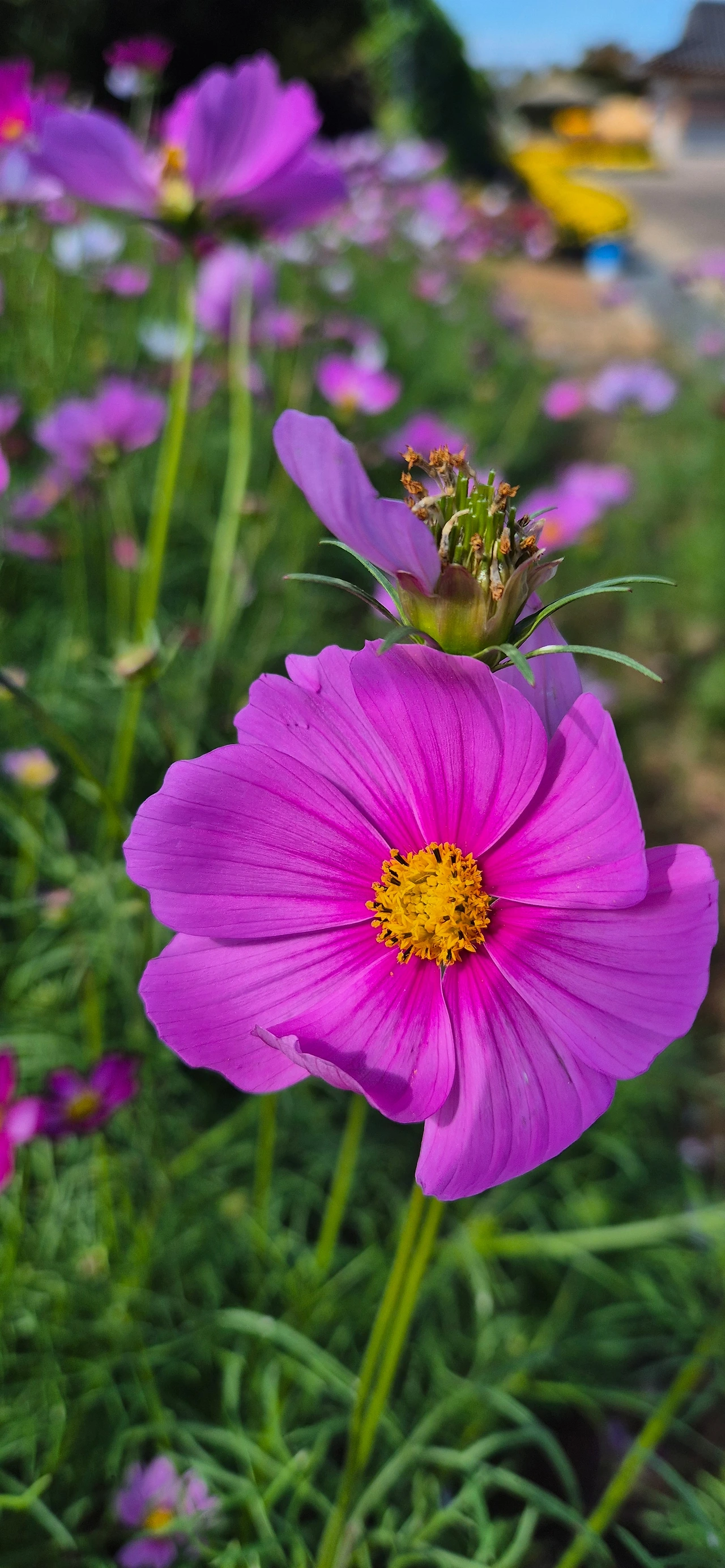 색색이 다른 코스모스 줄 세워