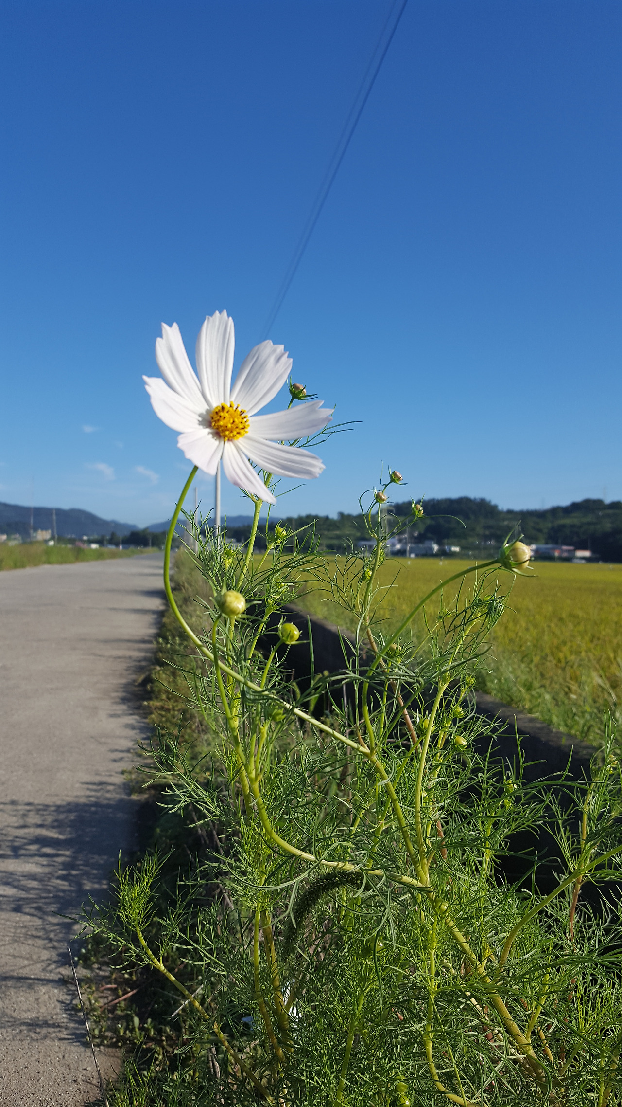 하얀 코스모스 한송이가