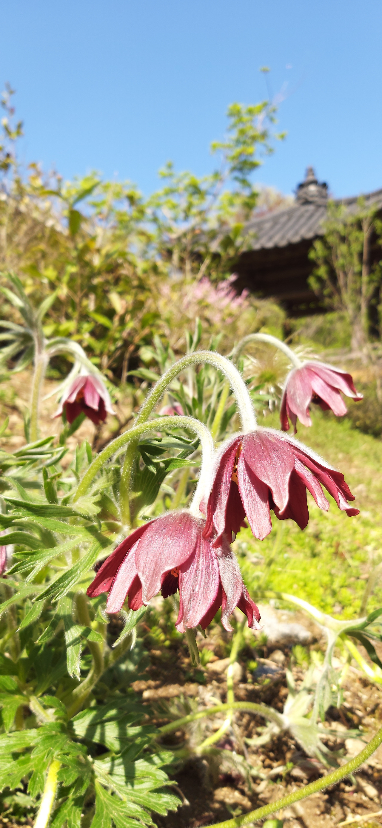 예쁜 얼굴 부끄러워 깊게 숙인 할미꽃