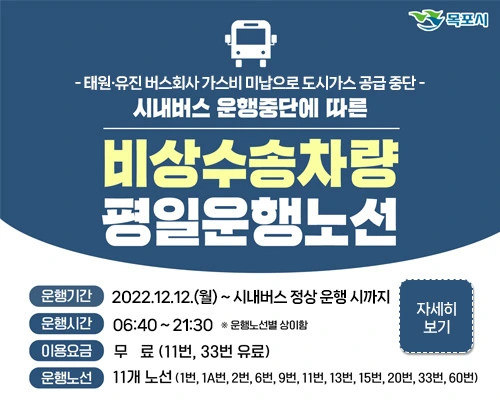 그리고 한 달 만인 12월, 이번에는 사측이 폐업을 선언하며 운행을 또다시 중단했다. 21억 원의 체불 임금뿐만 아니라, 23억 원의 천연가스 충전 대금 등 극심한 적자와 부채에 시달리고 있어 목포시의 추가적인 지원이 없다면 운행 재개가 불가능하다는 이유였다. 목포시는 타 지자체보다 저상버스 도입, led 행선판 지원, 공영차고지 설치 등 재정을 투입해야 하는 사업에 소극적이었다. 특히 목포시의 소극적인 태도는 사측의 비용 부담으로 이어졌다. 차량 운행을 끝내면 차고지로 돌아가야 하는데, 기·종점 근처에 공영차고지가 없어 멀리 떨어진 차고지까지 돌아가거나 민영차고지 임대료를 지불해야 했기 때문이다.