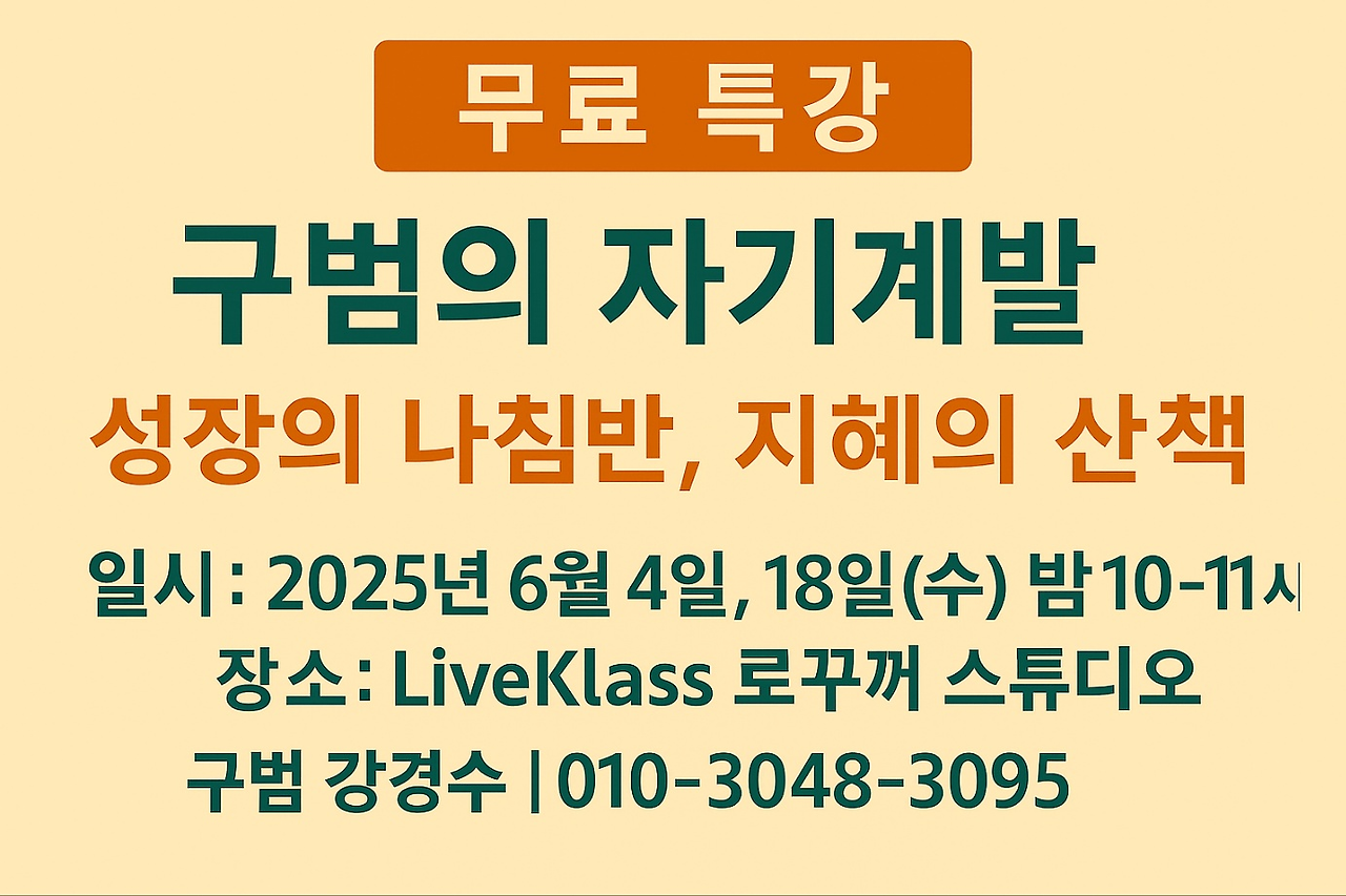 구범 강경수와 함께하는 무료 특강, 매주 첫째주 수요일 22시에는 '성장의 나침반',