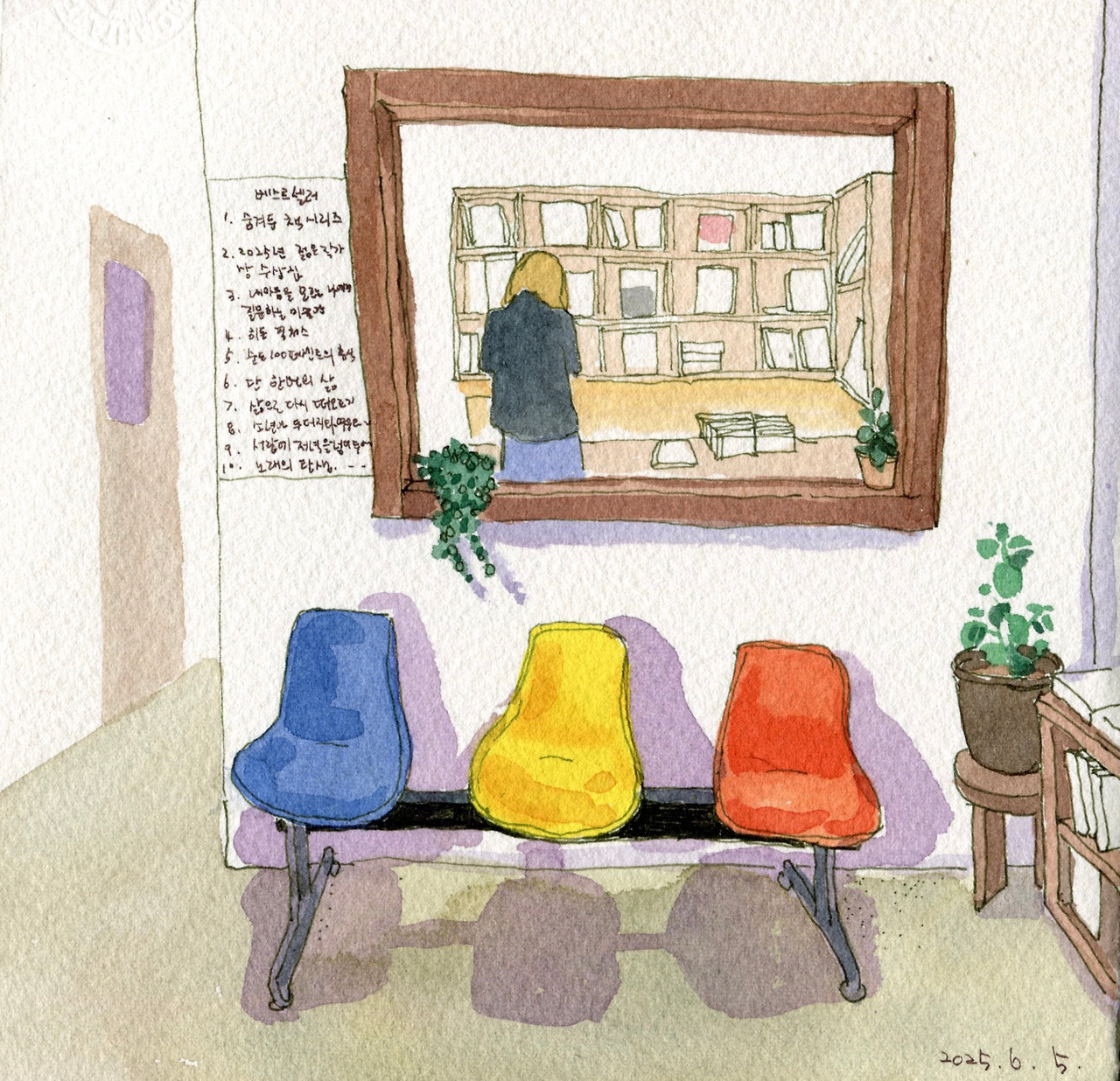 마음이 힘들다는 말과 책 추천이라는 단어가 귀에 쏙 들어왔다. 그림에서 눈을 떼고 그들을 지켜봤다.