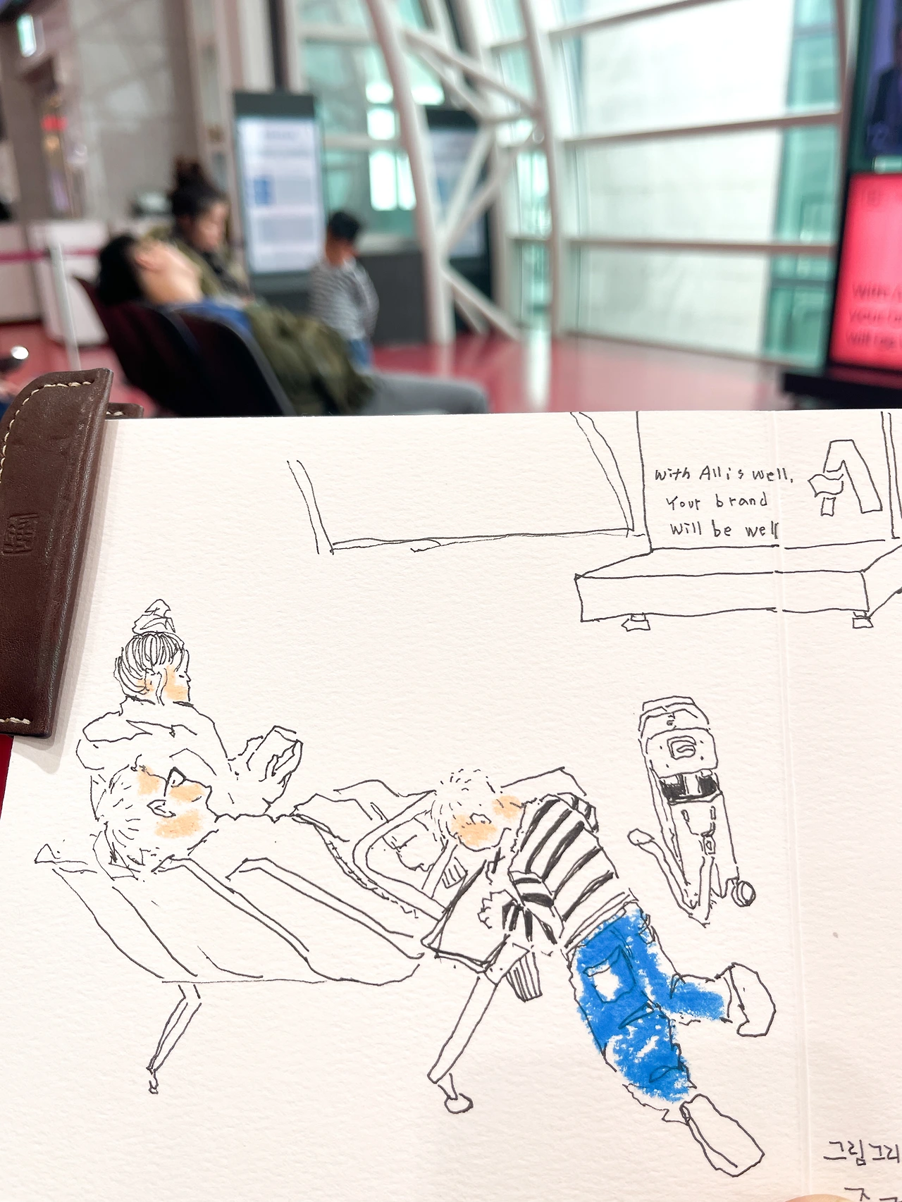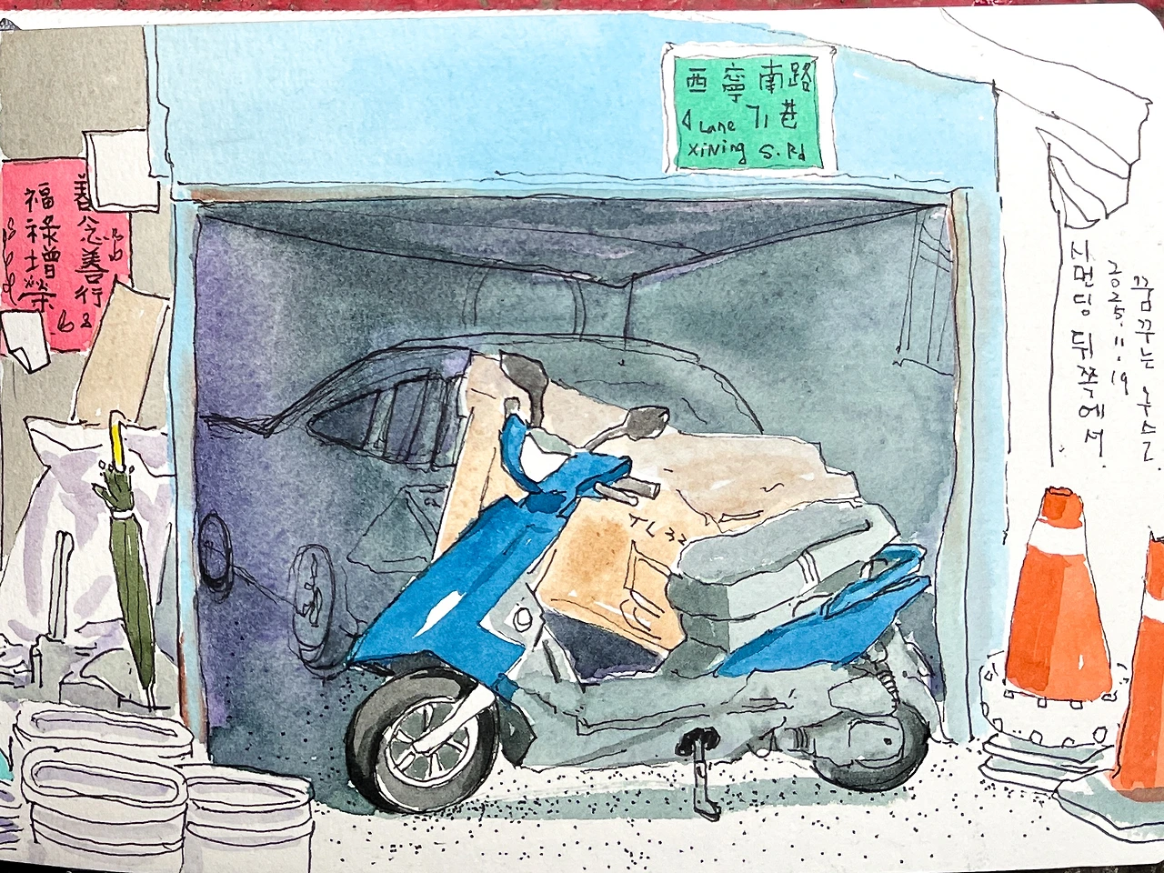 머뭇거리며 그림 도구를 꺼내 긁적였지만