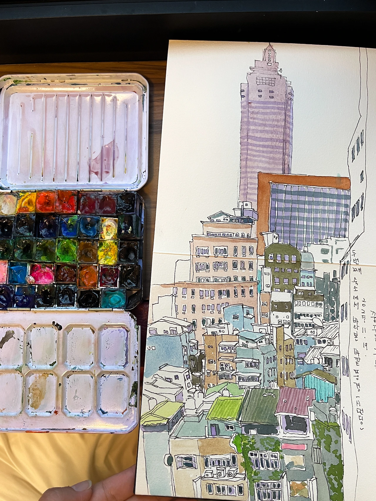 분위기에 휩쓸려 그림 도구를 꺼내고