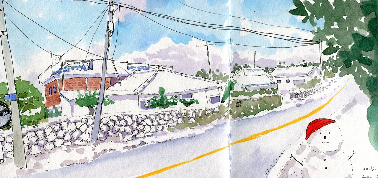 눈이 내린 지난날 사진을 꺼내 그려본다.