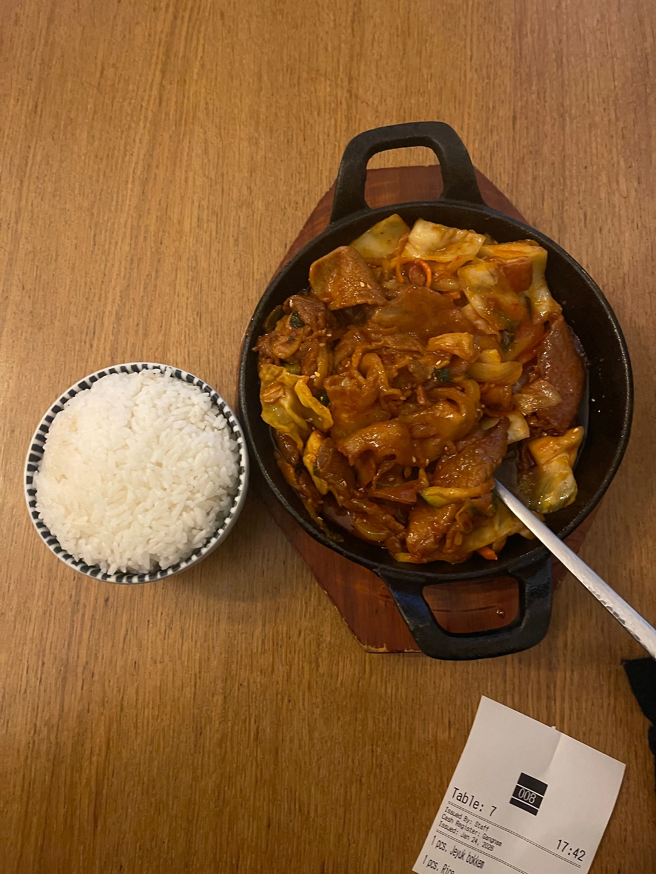 제육볶음과 밥을 시켰는데 반찬도 없이 제육볶음 하나 밥하나 이렇게 나왔다.