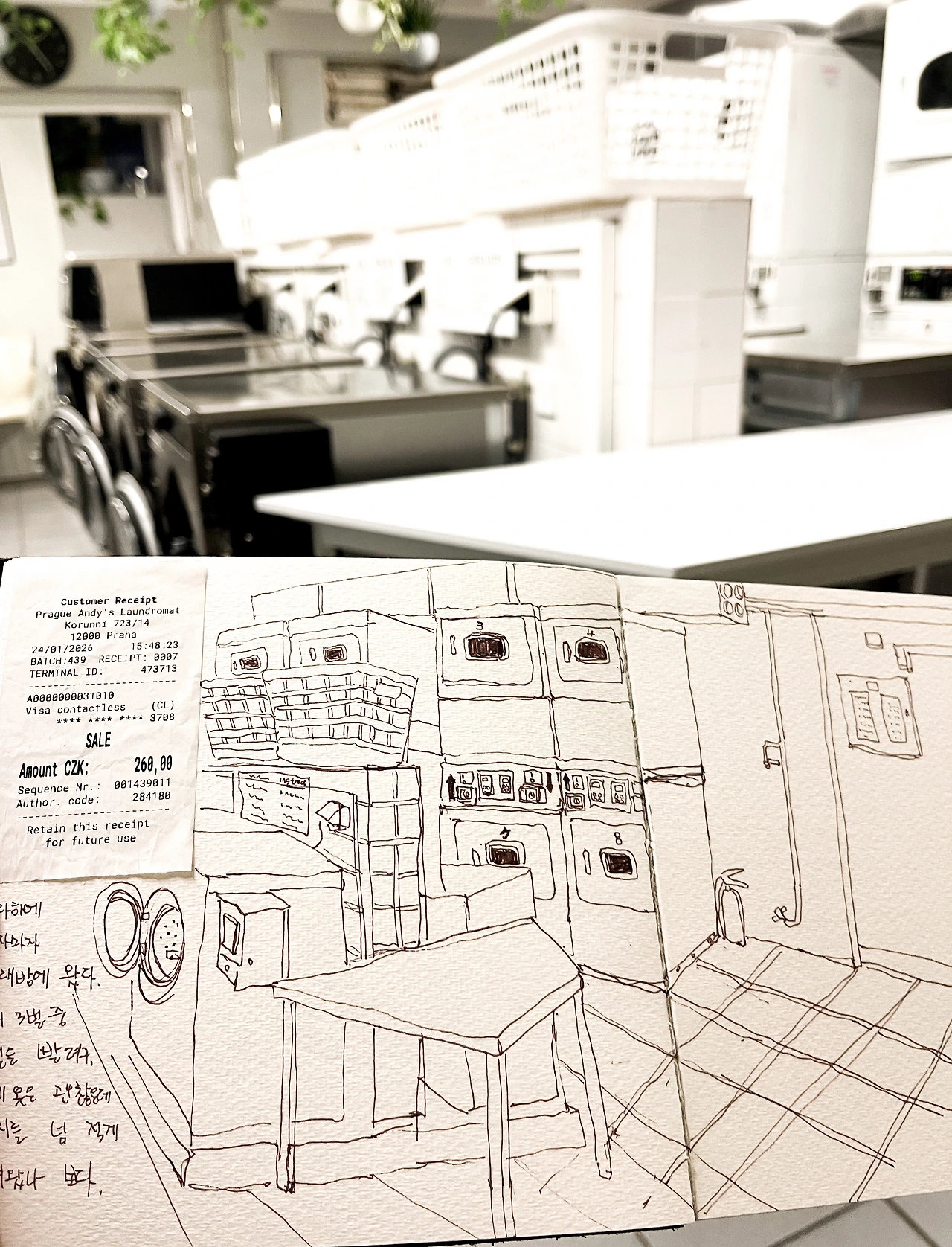 숙소에서 버스로 몇 정류장 간 뒤 내려서 10분 정도 걸으면 빨래방 도착.