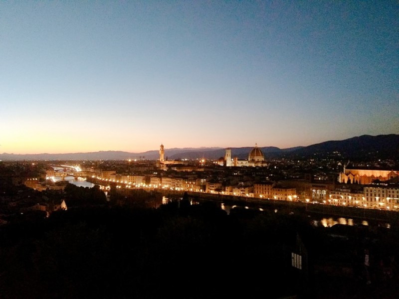 피렌체 시내와 아르노 강변에 불빛이 반짝이며 야경이 펼쳐졌다. 환상적인 맛과 멋이 있는 도시 피렌체가 보인다.