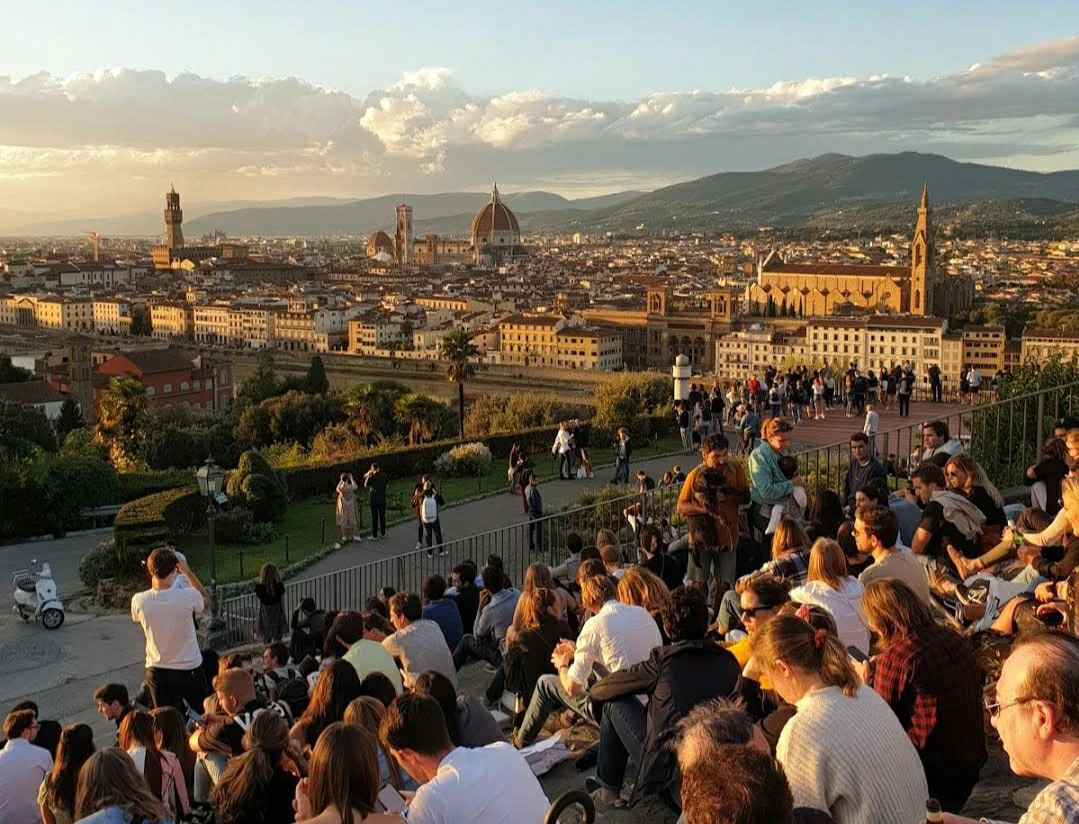 마침내 도착한 미켈란젤로 광장에는 수많은 사람들이 계단에 앉아 해가 지기를 기다리고 있었다. 광장 중앙에는 미켈란젤로 400주년을 기념해서 청동으로 만들어진 다비드상의 복제품이 우뚝 세워져 있다.