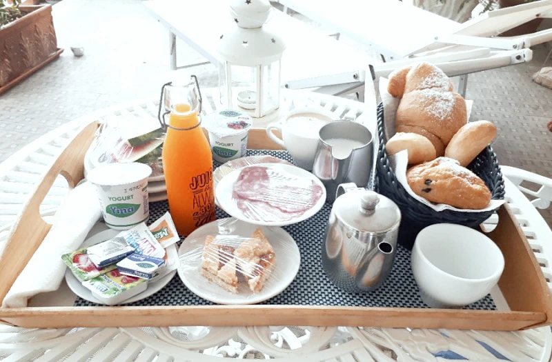 조식은 식당에 내려가 먹을 수도 있고 체크인할 때 미리 말하면 아침에 객실로 가져다 주기도 한다.