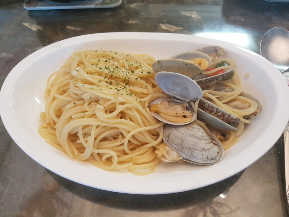 우리 둘은 감탄을 금치 못했다. 국수는 좋아하지만 파스타를 그리 좋아하지 않는 남편은 먹어 봤어야 알지 하는 표정으로 갸웃거릴 뿐이다. 파스타 면의 익힘 정도도 딱 좋았고 바지락의 감칠맛과 짭조름하고 고소한 맛에 페페론치노 대신 들어간 땡초의 매콤함까지 더해 정말 정말 맛있었다.