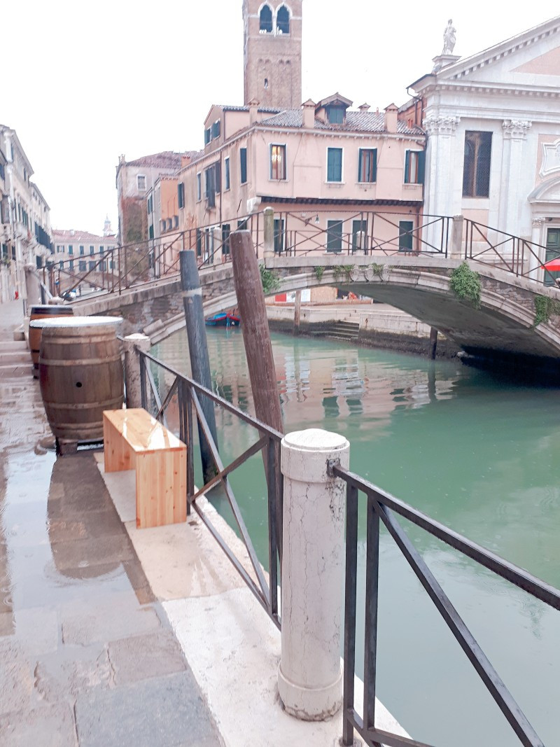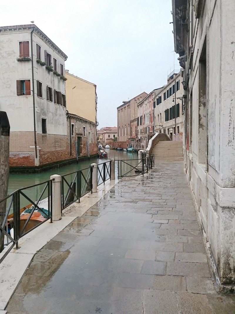 천천히 산책을 하듯 지난밤에 갔었던 리알토 다리로 갔다. 비가 많이 와서 물기를 머금은 운하와 인적이 없는 다리의 모습은옛날 필름으로 찍은 오래된 영화 속 한 장면 같았다. 잘 지어진영화 세트장을 혼자 걷는 것처럼 비현실적으로 느껴진다.내친김에 마르코 광장까지 걸어 가볼까...