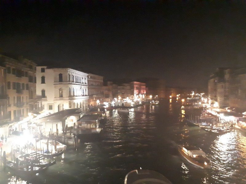 그 와중에도 리알토 다리 위에는 야경을 보기 위해 모인 여행객들이 제법 있었다. 사람들과 비 때문에 좀 불편한 것은 사실이지만 그럼에도 불구하고 비에 젖은 야경은 여전히 아름다웠다. 지금 이 순간 베네치아에 와 있다는 두근거림이 우리를 알 수 없는 감상에 빠지게 만들었다.