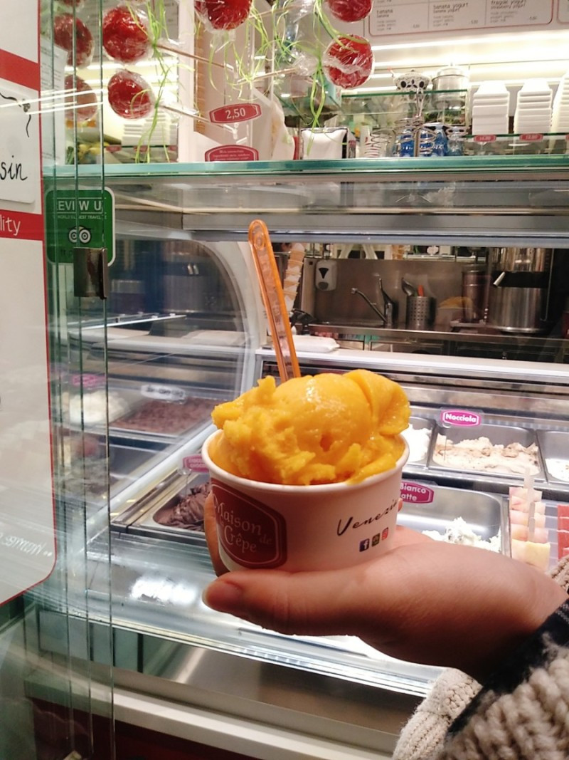 맥주와 새우튀김을 사들고 리알토 다리 야경을 보러 갔다. 비가 오니 거리도 우중충하게 느껴지고 우산 때문에 힘들고 사진도 예쁘게 나오지 않는다. 비 오는 베네치아 싫다며 가벼운 짜증을 내는 딸을 젤라토 사주며 달랬고 내일은 비가 개이기를 진심으로 바랐다.
