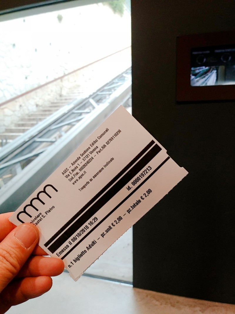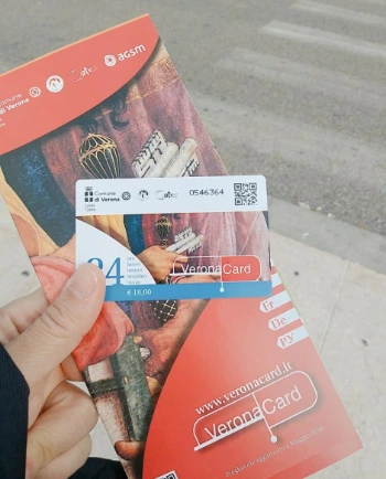베네치아 산타루치아 역에서 기차를 타고 1시간가량 걸려서 베로나 역에 도착했다. 먼저 인포메이션 센터로 가서 베로나 카드를 구입해야 한다. 17군데 관광지 입장권 및 교통권이 포함된 시티 통합권이다. 24시간, 48시간 등 종류는 많지만 우리는 당일치기 여행이라 24시간권(1인 18유로)을 구입했다. 우리가 가보고 싶은 몇 군데만 가더라도 입장권을 구입하는 것보다 더 싸고 버스도 무제한 탈 수 있기 때문에 베로나에서는 꼭 이 카드를 구입하는 게 유리한다. 특히 아레나 같은 경우 베로나 카드 전용 입구가 있어 줄을 서지 않고 먼저 입장할 수 있다.