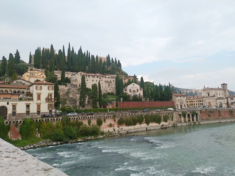 피에트라 다리에서 바라보는 아디제 강과 강 주위에 있는 건물들 모습이 너무 아름다웠다. 아무리 보고 있어도 질리지 않을 것 같았다. 그래도 이제 산 피에트로 성으로 올라가 볼 차례다.