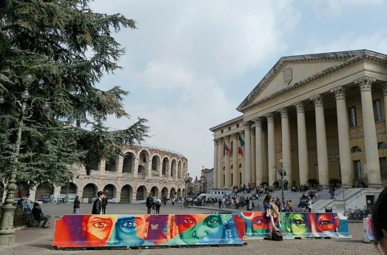 베로나의 대표적인 쇼핑 거리인 마찌니 거리와 가까운 브라 광장 (Piazza Bra)에 위치한 아레나는 고대 로마 원형 경기장이었고 매년 여름이면 오페라 축제가 열리는 곳으로 세계적으로 유명하다.