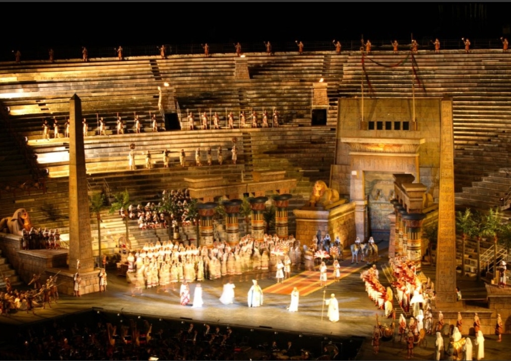베로나의 아레나는 1세기경 로마 시대에 세워진 곳으로 이탈리아에서 세 번째로 큰 원형 경기장이다. 고대 로마 시대에는 검투사들의 경기가 이루어졌고 중세에는 기사들의 마상 경기 등이 여기서 치러졌다고 한다. 근대에 들어오면서 주로 연극 공연들이 열렸는데 1913년 베르디 탄생 100주년 기념으로 오페라 '아이다'가 처음 공연되면서부터 매년 여름이면 오페라 축제가 열리는 공연장이 되었다.