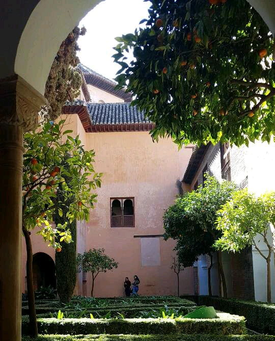 여러 용도의 공간마다 상징과 섬세한 기교, 아랍 특유의 아라베스크 문양의 우아함 등 볼거리가 너무 많았다. 아치로 이루어진 회랑사이로 오렌지 나무가 있는 정원을 보며 나는 마치 수백 년 전 역사 속을 걷고 있는 듯한 기분이 들었다.