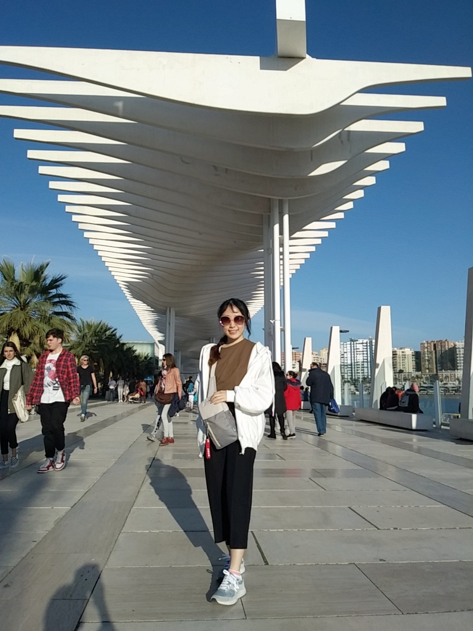 추워서 오들오들 떨고 있는 딸을 굳이 끌고 말라게타 조형물 앞에서 인증샷을 찍었다. 그래... 이제 인증샷 찍었으니 됐다. 허무한 마음을 다잡고 높은 건물들 사이를 가로질러 따뜻한 햇살이 비치는 반대편 해양 공원으로 다시 돌아갔다.