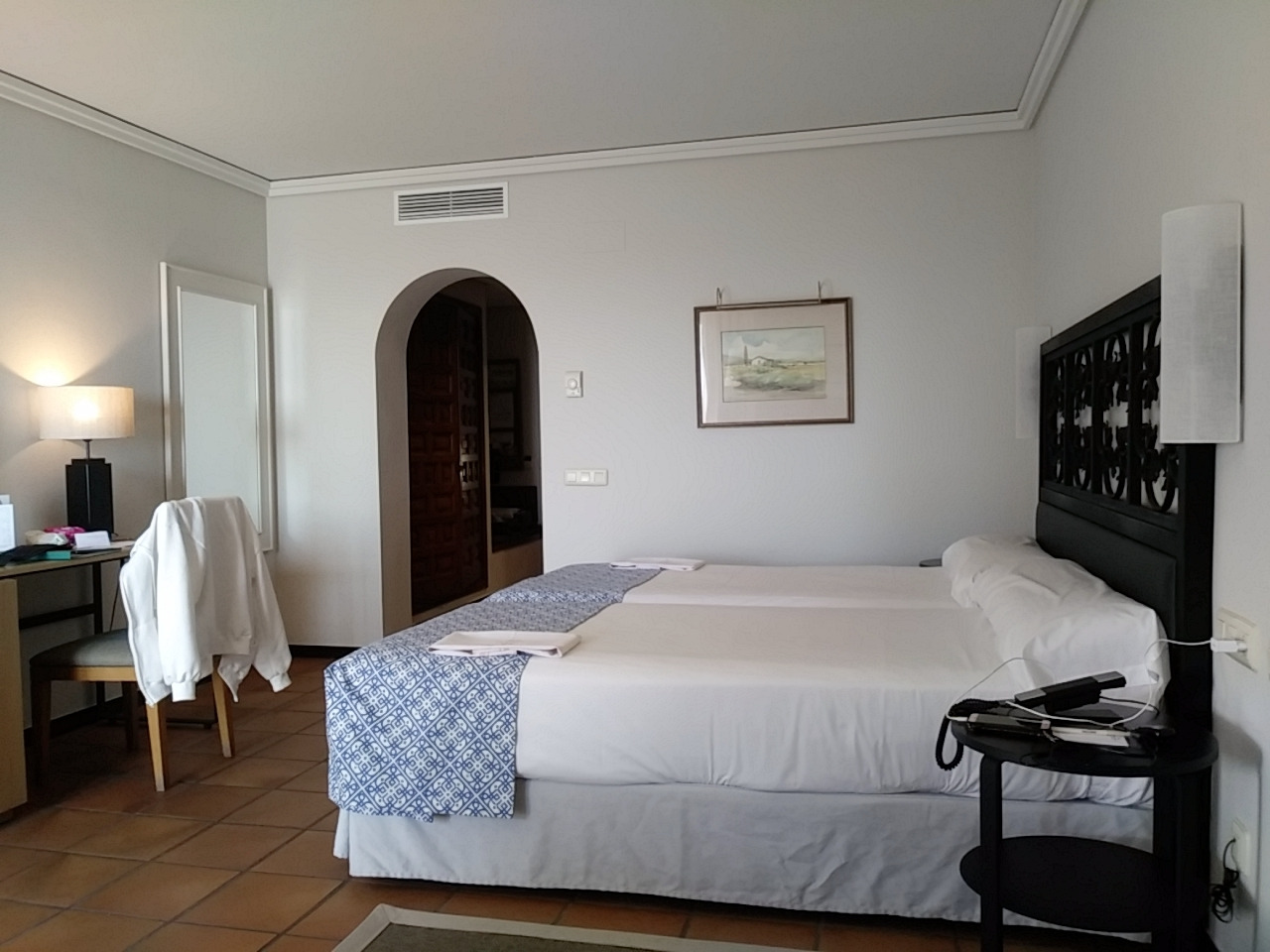 체크인 카운터에 예약 바우처와 조식 쿠폰, 그리고 아미고 카드를 제시하고 객실 키와 웰컴 드링크 쿠폰을 받았다. 바로 시내로 갈 예정이라 캐리어를 두기 위해 객실로 올라갔다. 객실에 들어선 순간 우리는 환하고 예쁜 인테리어에 깜짝 놀랐다. 기본인 스탠더드 룸으로 예약해서 큰 기대가 없었는데 넓고 세련된 디자인의 객실과 욕실, 그리고 테라스에서 보이는 풍경까지 말도 못 하게 멋지다. 규모가 작았던 그라나다의 호텔과 비교되어 더 좋아 보이는 걸까?