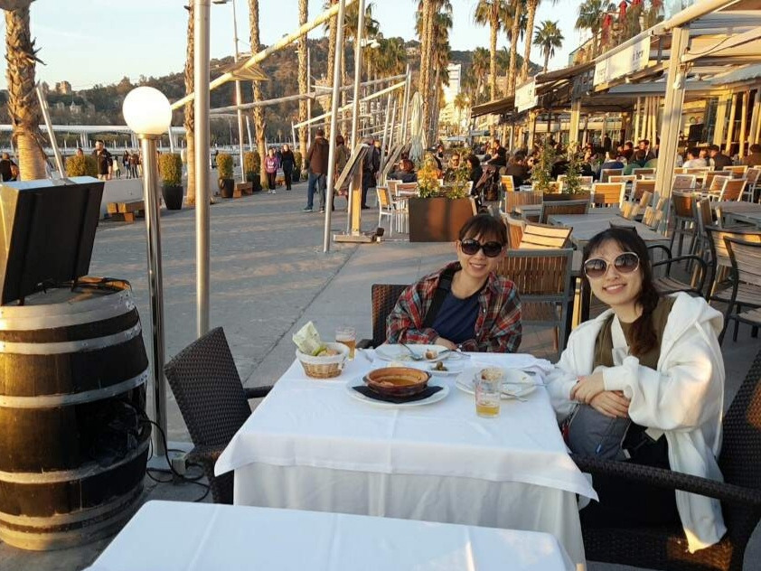 부산에서 태어나 지금도 부산에 살고 있는 나는 항상 바다가 좋았다. 부산 바다와는 다른 색, 다른 느낌을 주지만 눈 앞에 일렁이는 파도를 보니 내 마음도 파도치듯 설레는 것 같다. 야자수가 뻗어 있는 이국적인 거리의 모습과 지중해 바다가 어울려 말도 못 하게 아름다운 모습이다. 우리는 해가 지고 어둠이 주위를 감쌀 때까지 가만히 바다를 보고만 있었다.