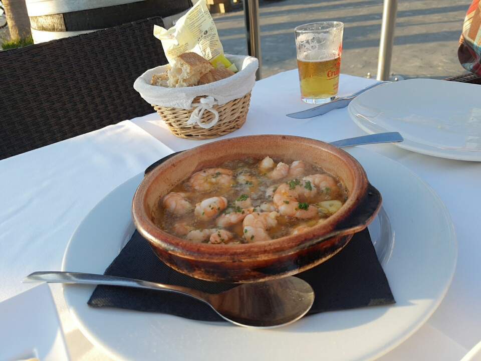 한바탕 해프닝이 끝나고 음식이 나왔다. 우리는 식사 메뉴로 감바스와 이베리코 스테이크로 주문했는데석양에 물드는 바다를 바라보며 먹으니 더 맛있는 것 같았다. 눈과 입이 모두 즐거운 저녁 시간이다.
