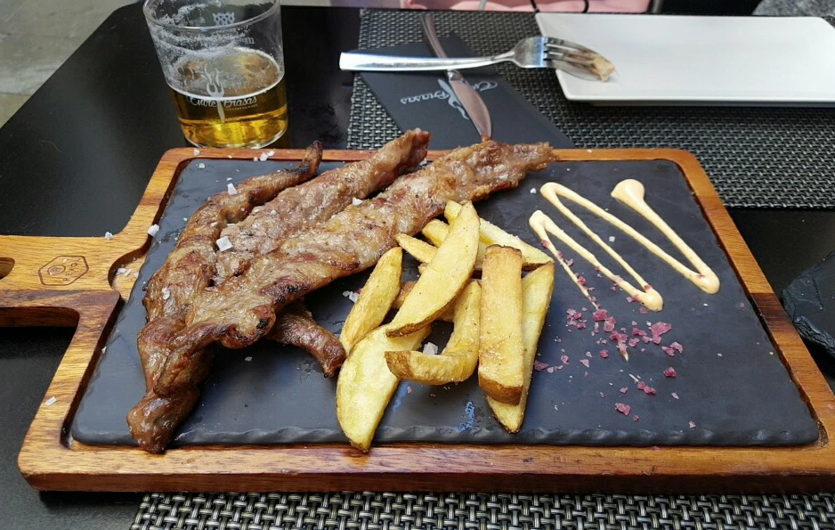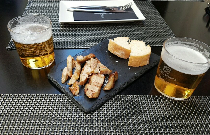 이 식당은 이베리코 스테이크로 유명한 곳이라 맥주를 두 잔 시키자 타파스로 이베리코 구이가 따라 나왔다. 타파스 맛은 나쁘지 않았지만 늦은 점심으로 이베리코 스테이크도 1인분 따로 주문해서 맛보기로 했다.