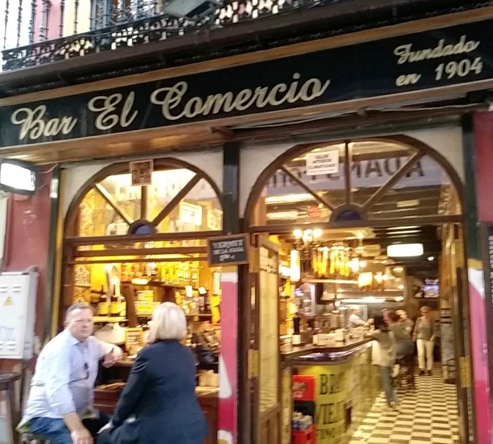 한참을 가다 보니 어디서 많이 보던 가게가 나왔다. 1904년부터 대를 이어 내려온 전통 깊은 추로스 맛집 바 엘 코메르시오Bar el Comercio 였다. 여행 책자나 TV 여행 프로그램 등에서 워낙 많이 소개가 되어서 처음 가보는 데도 왠지 익숙한 느낌이다. 친숙한 입구에 들어서면 바 공간이 길게 놓여 있고 안쪽으로 더 들어가면 테이블이 있는 홀이 나온다. 물론 추로스만 파는 건 아니고 여러 가지 타파스나 술도 팔고 있는 바(bar)였다.