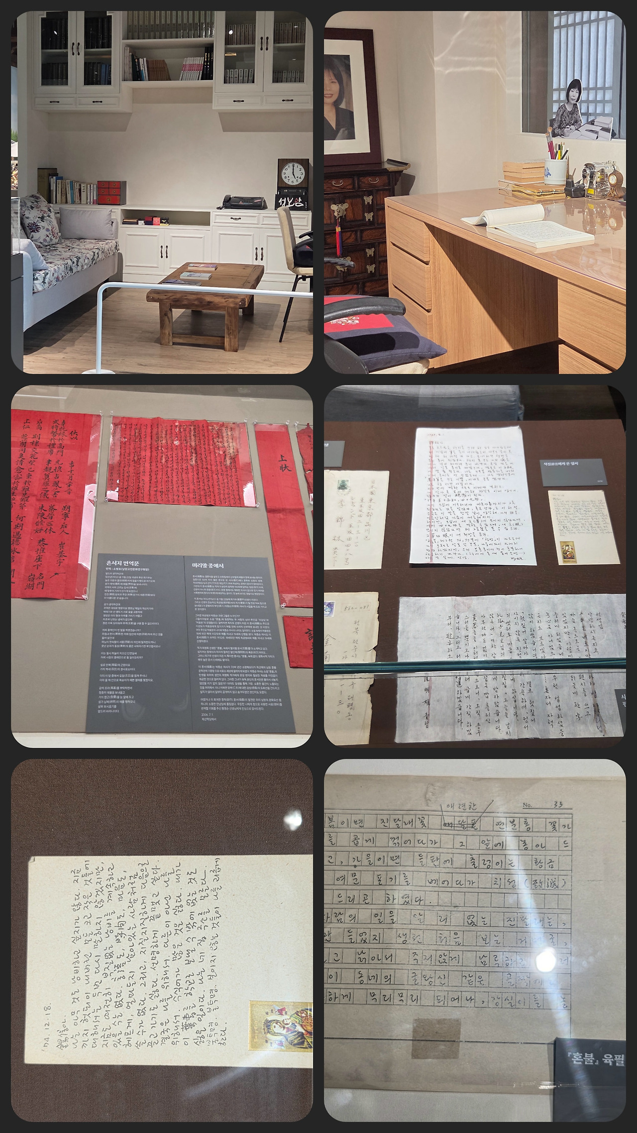 출입구 쪽에 작가의 방을 꾸며 놓았고 아늑한 소품들과 작가의 친필 원고, 친지들에게 쓴 편지도 펼쳐져 있다.