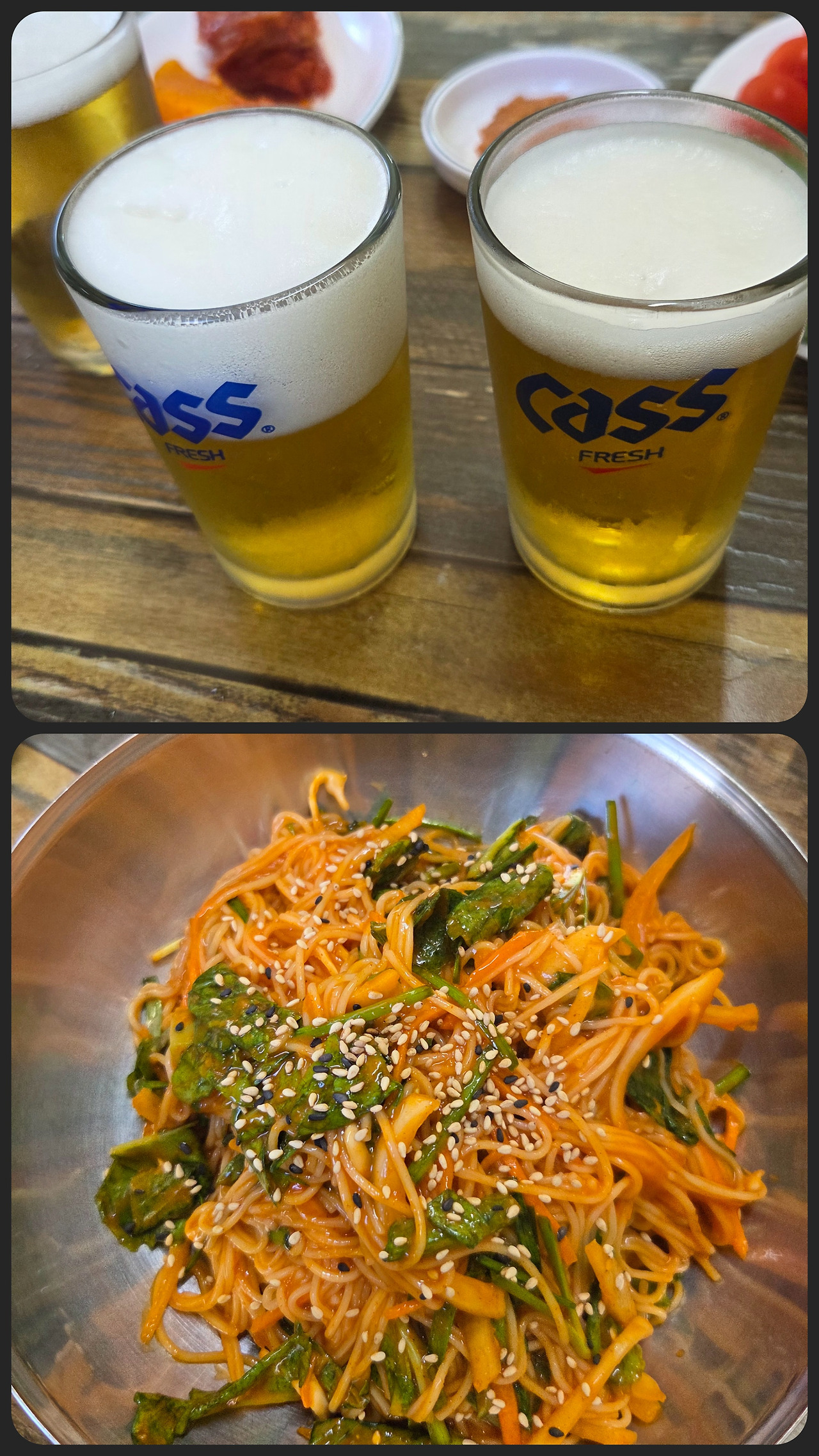 비빔국수와 찬 맥주 한 잔을 마셨다.