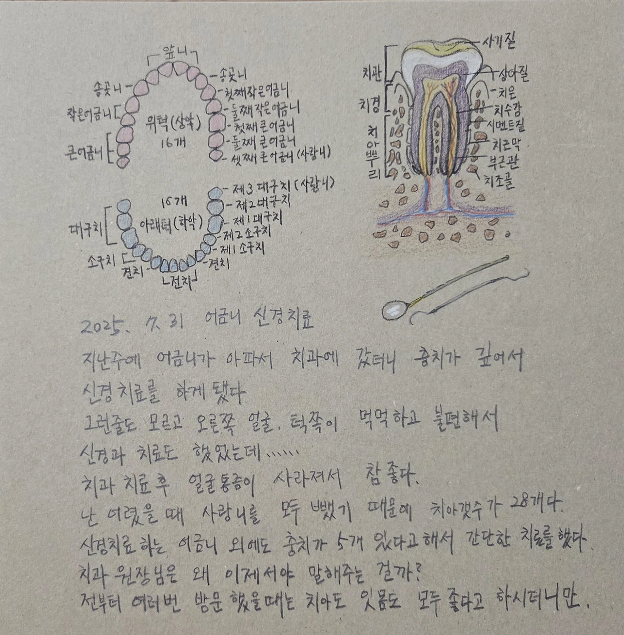 나도 그 할머니처럼 레진으로 때운 치아가 정확히 어디 어디 몇 개인지 잘 모른다.