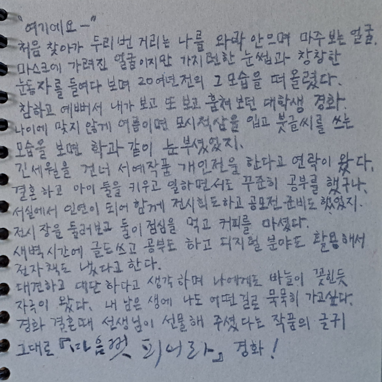 오랫동안 헤어졌다가, 중학생 딸을 둔 엄마로, 전시를 여는 서예가로 만났을 때 참 대견하다 했는데,