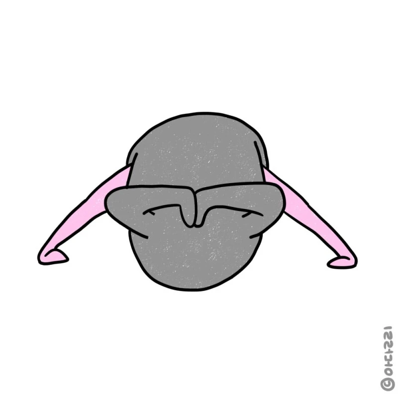 상체에 힘을 쑥 빼고 머리를 아래로 덜렁 내려놓는다.