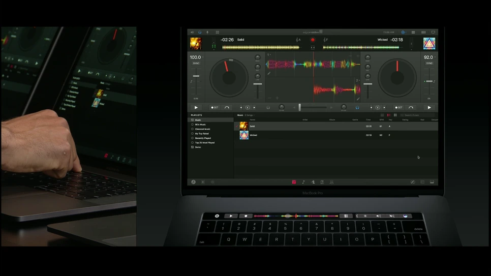디제이 프로 역시 준비된 음원 리소스와 이펙트들을 활용하여 터치바만을 사용하여 디제잉을 하는 시연을 보여줍니다. 터치바를 이용하여 스크래치도 하고 여러 기교를 부리는 모습이 인상적입니다. 터치바가 맥북으로 들어오지 않았다면 사용자들은 이런 캐주얼한 수준의 디제잉을 하기 위해서도 온갖 장비를 추가해야 했을 것입니다. 두 결과물 모두 아직 완벽하다고 이야기할 수는 없지만, 직관적인 인터페이스에 대한 더 많은 고민들이 더해진다면 우린 도대체 여기서 어떤 일까지 할 수 있게 될까?라는 기대를 해보기에 충분한 가능성을 보여주고 있습니다.