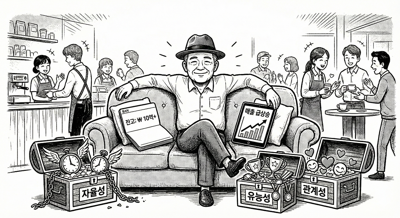 알바생 시급이 아까워 사장인 당신이 12시간 내내 카운터를 지켜야 한다면, 그것이 과연 자율적인 삶일까? 월세를 내기 위해 영업시간을 늘리고, 알바생을 줄이고, 하루 종일 일만 하는 '명목만 사장'인 케이스가 유독 카페에 많다. 진정한 자율성은 '자본의 여유'로부터 나온다.