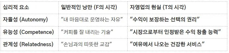 많은 이들이 상사 눈치 안 보고 내 마음대로 일하고 싶어 카페를 차린다. 하지만 수익이 나지 않는 순간(비즈니스 모델 작동 불가), 자율성은 신기루처럼 사라진다.