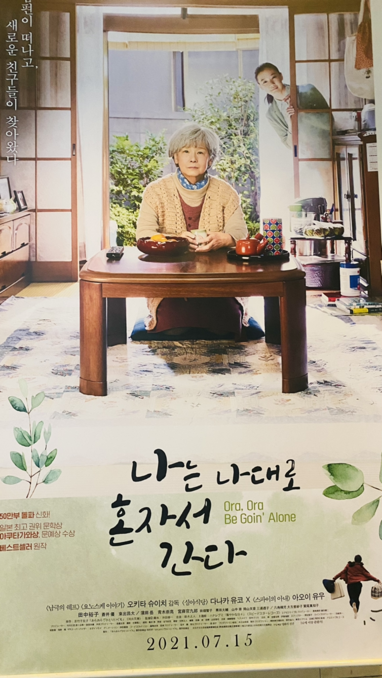 최근 개봉한 일본 영화 "나는 나대로 혼자서 간다"는 남편이 죽고 홀로 삶을 살아가는 미망인의 이야기다. 그녀는 매일 아침 일어나 빵과 계란 프라이로 아침을 먹은 뒤 동네 병원에 들리고, 도서관에 가서 고대 생물 책을 읽으며 반복되는 일상을 산다. 딸은 필요한 일이 있을 때만 연락하고, 아들과는 연락이 끊긴 지 오래다. 그녀가 어두운 방에서 홀로 행복했던 과거를 추억할 때 고향 사투리로 ‘내는 니다’라고 말을 걸으며 등장하는 인물들이 있다. 이들은 쓸쓸하지만 자유로운 삶의 주인공이 되었다고 애써 위안 삼는 주인공의 내면이다. 특별할 것 없는 그녀의 남은 나날들이 그녀의 뜻대로 흘러갈 것이란 기대는 타인들에게 보내는 따뜻한 시선이 확인되며부터다. 그녀는 탁구를 함께 쳐보지 않겠냐는 도서관 사서에게 허락의 뜻을 전하고 갑자기 들른 손녀의 인형을 바라보다 낡아버린 옷을 새 옷으로 갈아줘야겠다고 말한다. 외로움과 싸워나가며 무덤덤하게 내면에 갇혀있던 자아가 타자로 향하는 순간이었다. 아이러니하게도 그녀의 홀로서기는 타인과 따스한 관계 맺기로 시작한다.