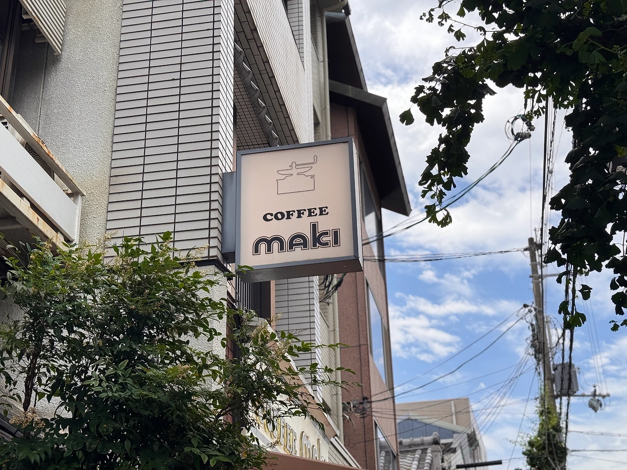 데마치야나기의 커피 하우스 마키에 도착했다. 소박해 보이는 외관과 달리 생각보다 깔끔하고 넓은 현대식 킷사텐 느낌이 들었다. 매번 도로가의 낡은 간판만 구경하며 지나쳤는데, 뒤쪽문에서 살펴보니 작지만 멋스러운 2층 건물 한 채를 통째로 쓰고 있었다. 게다가 주차장도 있는 카페는 교토에서 귀하게 느껴진다.