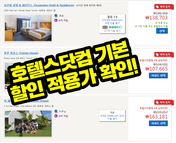 호텔스닷컴과 공식 제휴사인 트래블링에서 제공하는