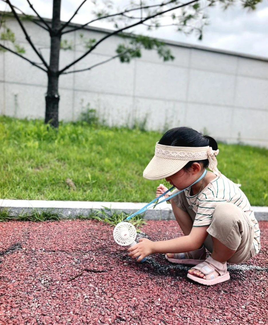 밖은 더우니 손선풍기도 들어야 한단다.