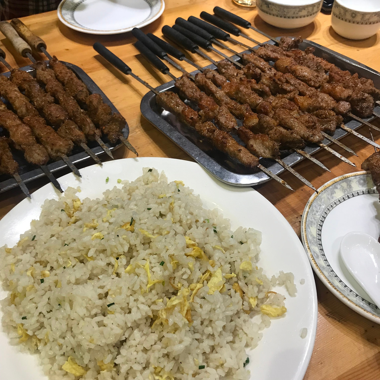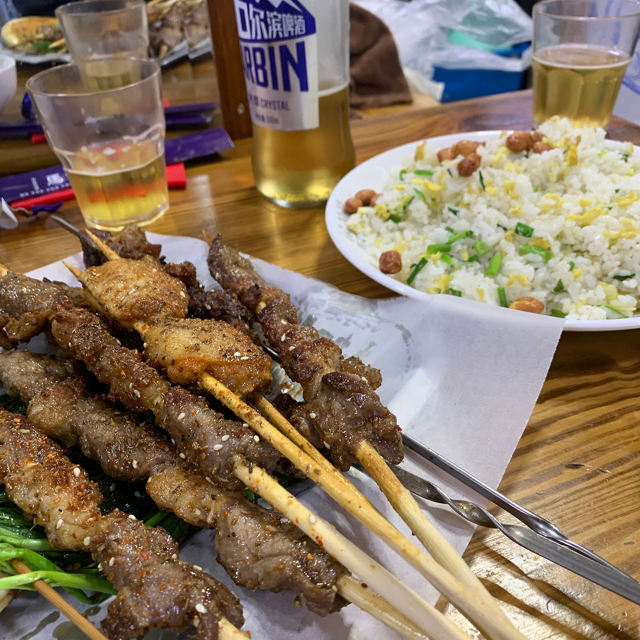 한국에서는 생꼬치를 가져다가 돌돌 도는 기계에 자신들이 구워 먹지만 , 원래 중국에서는 커다란 드럼통에 불을 피워 그위에 고기를 오려 놓고 부채질을 하며 길거리에서 굽는 게 원래 방식이다. 현재는 기계로 굽는 가게들이 보이지만 200년대 중후분엔 다들 그렇게 양꼬치를 구웠다. 가격은 양꼬치는 하나에 0.5위안(80원) 로우진은 1위안(160원) 이었고 이들이랑 같이 먹으면 맛있는 계란 볶음밥은 1인분에 8위안(1300원) 이었던 걸로 기억한다. 계란볶음밥은 정말로 양이 많았는데 1인분을 시키면 일회용 도시락에 2개가 배달되었다. 그래서 항상 친구들과 일인당 볶음밥 하나에 로우진 10개면 1인당 20위안(3600원)이면 충분했다.