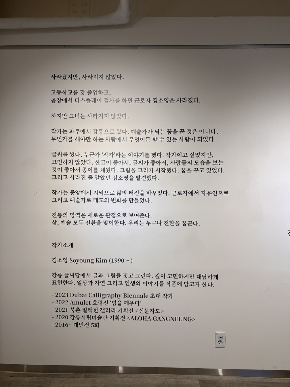 전시 주제와 서문을 컷팅 시트지로 내부 벽에 시공하고 외부에 걸 대형 현수막을 디자인하고 제작해서 시공하는 비용은 방문해 주신 관람객들의 축하금으로 치렀다. 화환이나 케이크 대신 받은 것이었다.