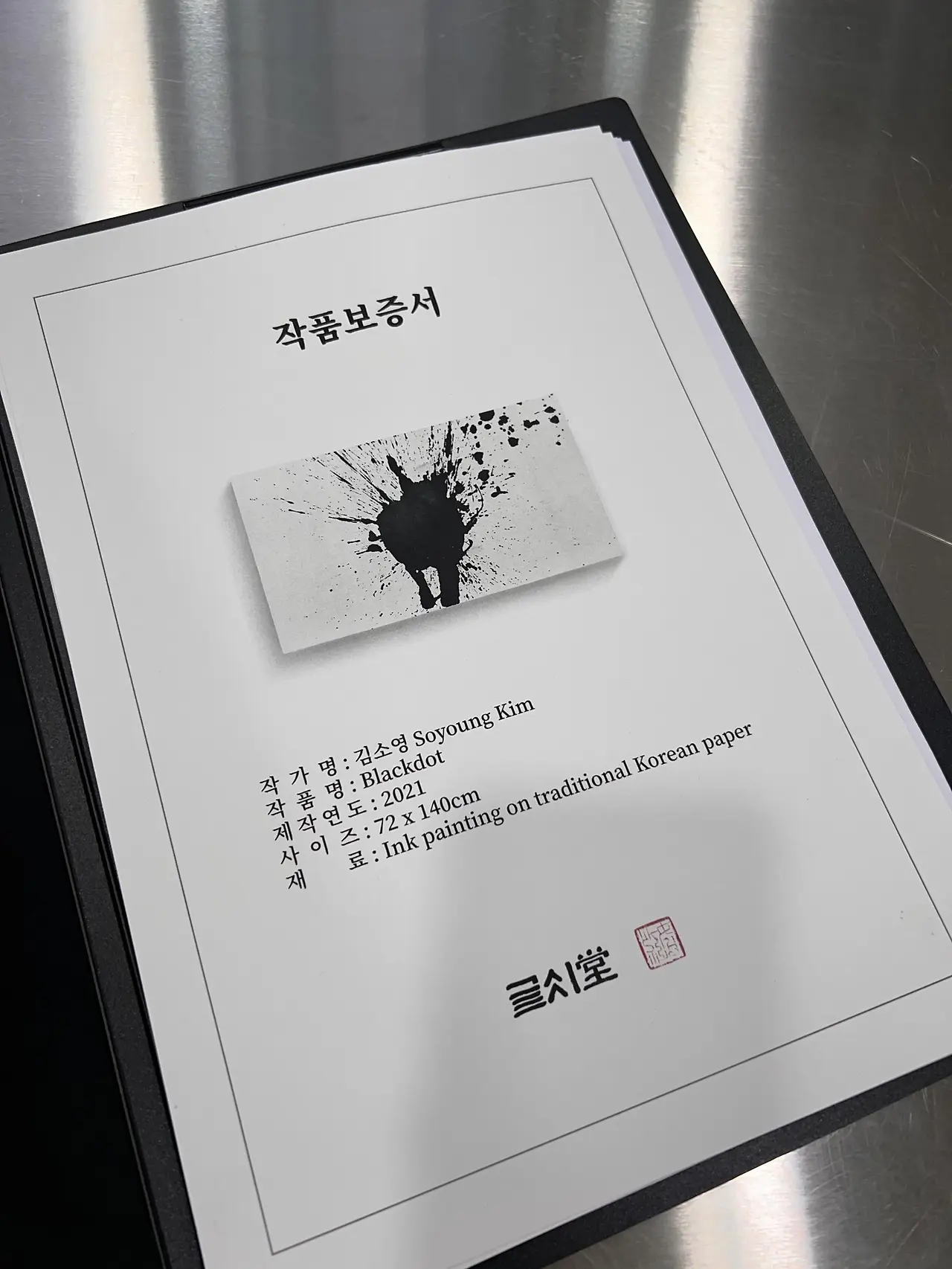 그럼에도 불구하고 감사하게 작품을 사주셨으니 작품 보증서를 드리고 싶었다. 작품 이미지와 정보를 기입하고 질 좋은 종이에 프린트해서 준비했다. 금속 캡션과 함께 동봉해 배송을 준비 중이다.