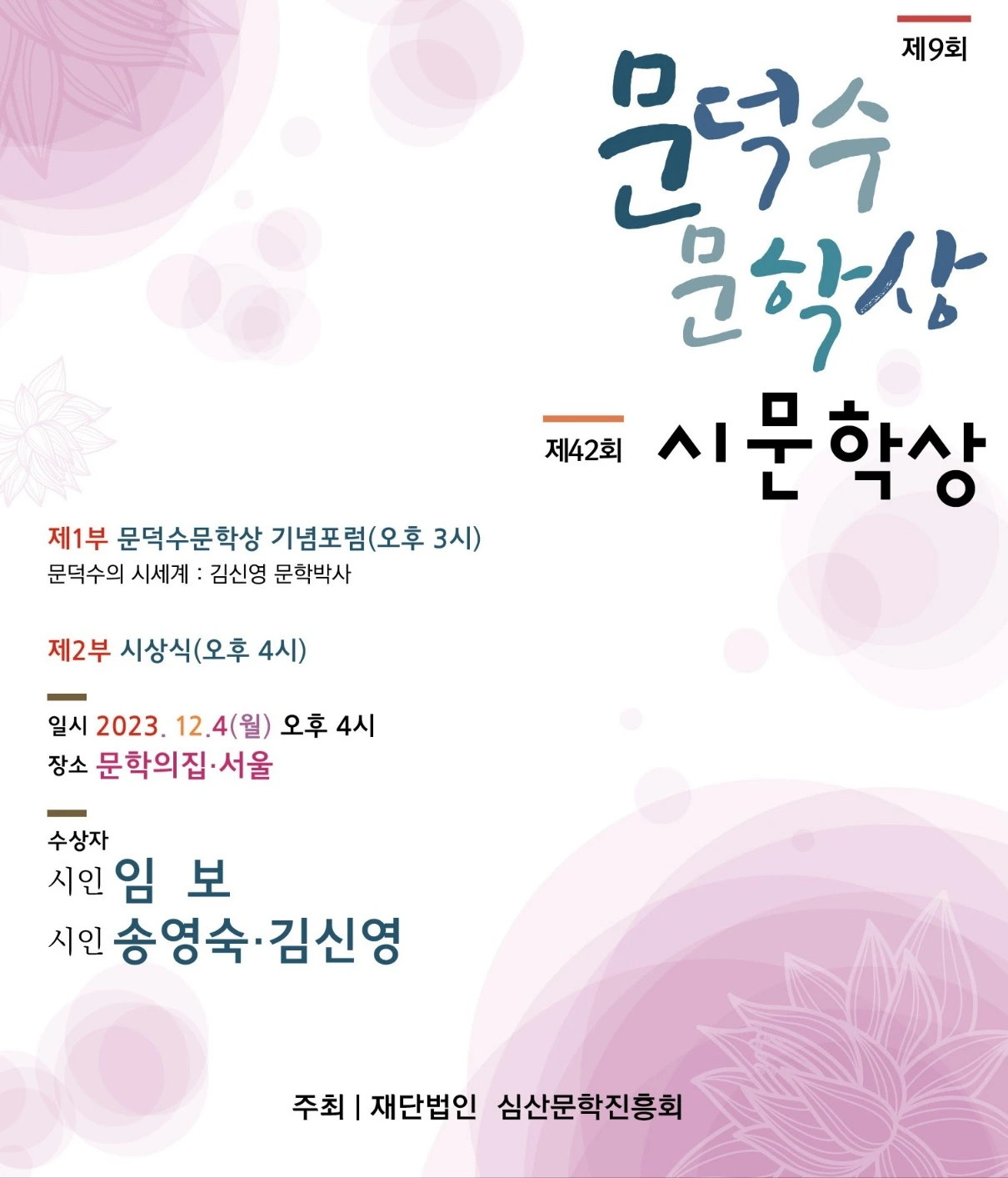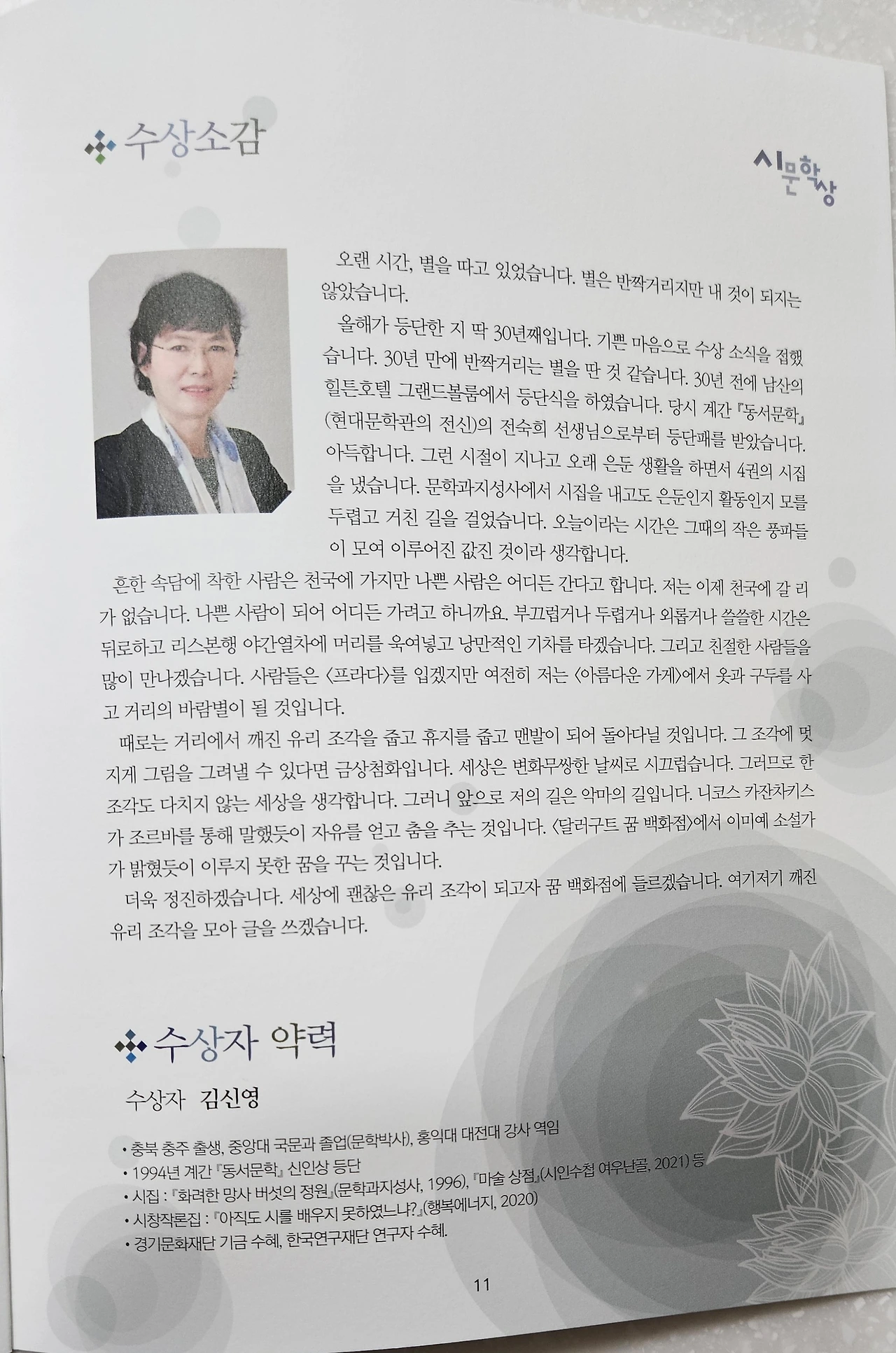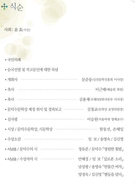 오늘 시문학상을 수상합니다. 많이 축하해 주세요.