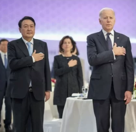 그들은 너무나 자연스럽게 그들의 가슴에 손을 올린다.